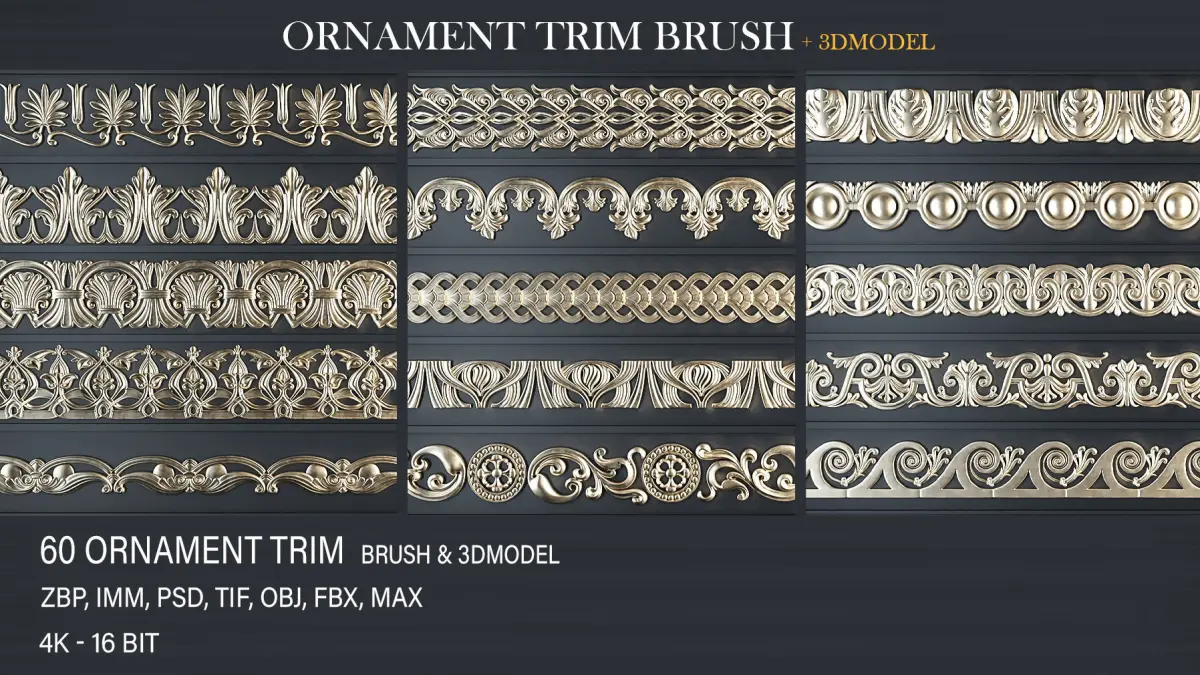 Trim Ornament Brush-vol01 Low-poly 3D model