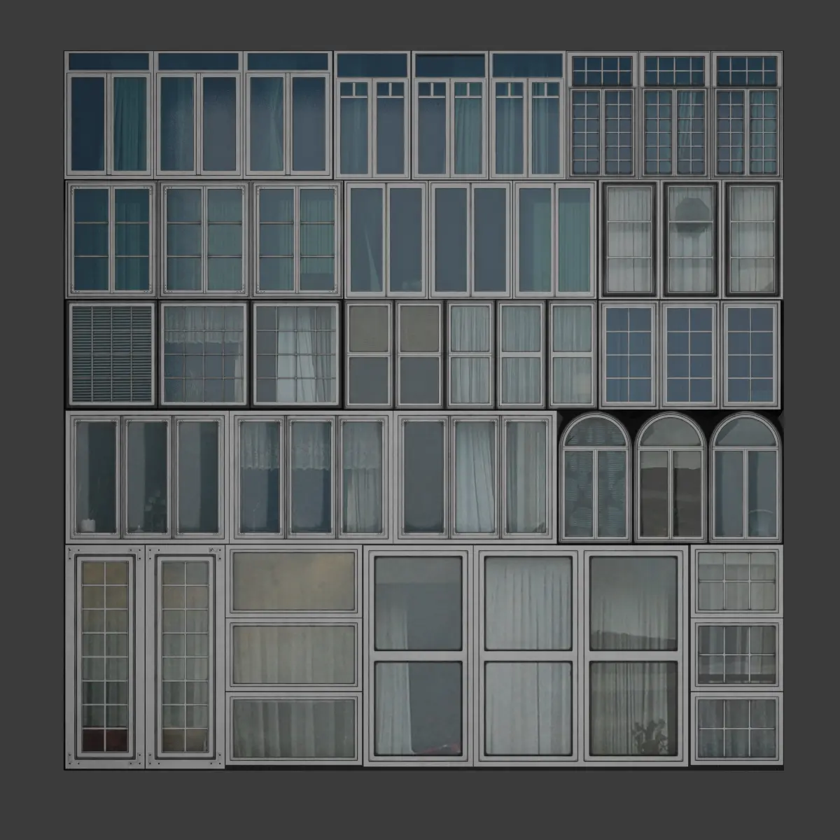 - High detailed textures available in 1K, 2K and 4K resolutions with 46 unique windows ready for your low poly assets