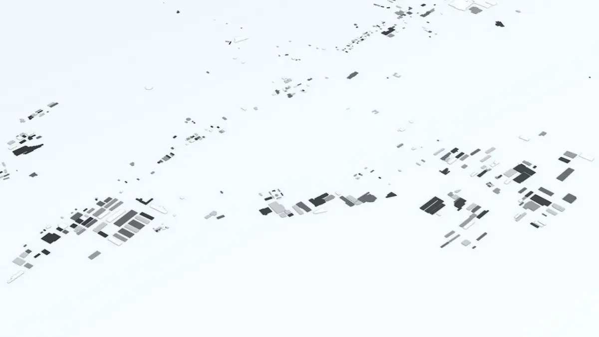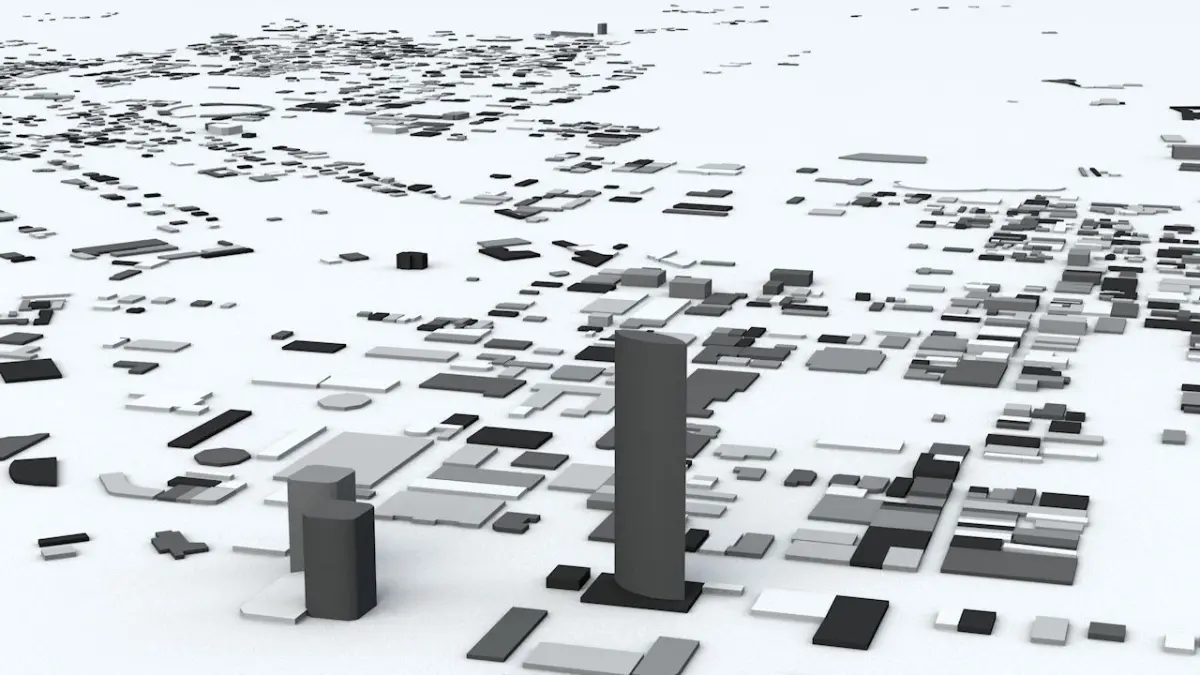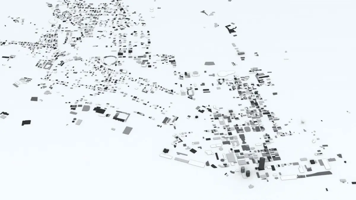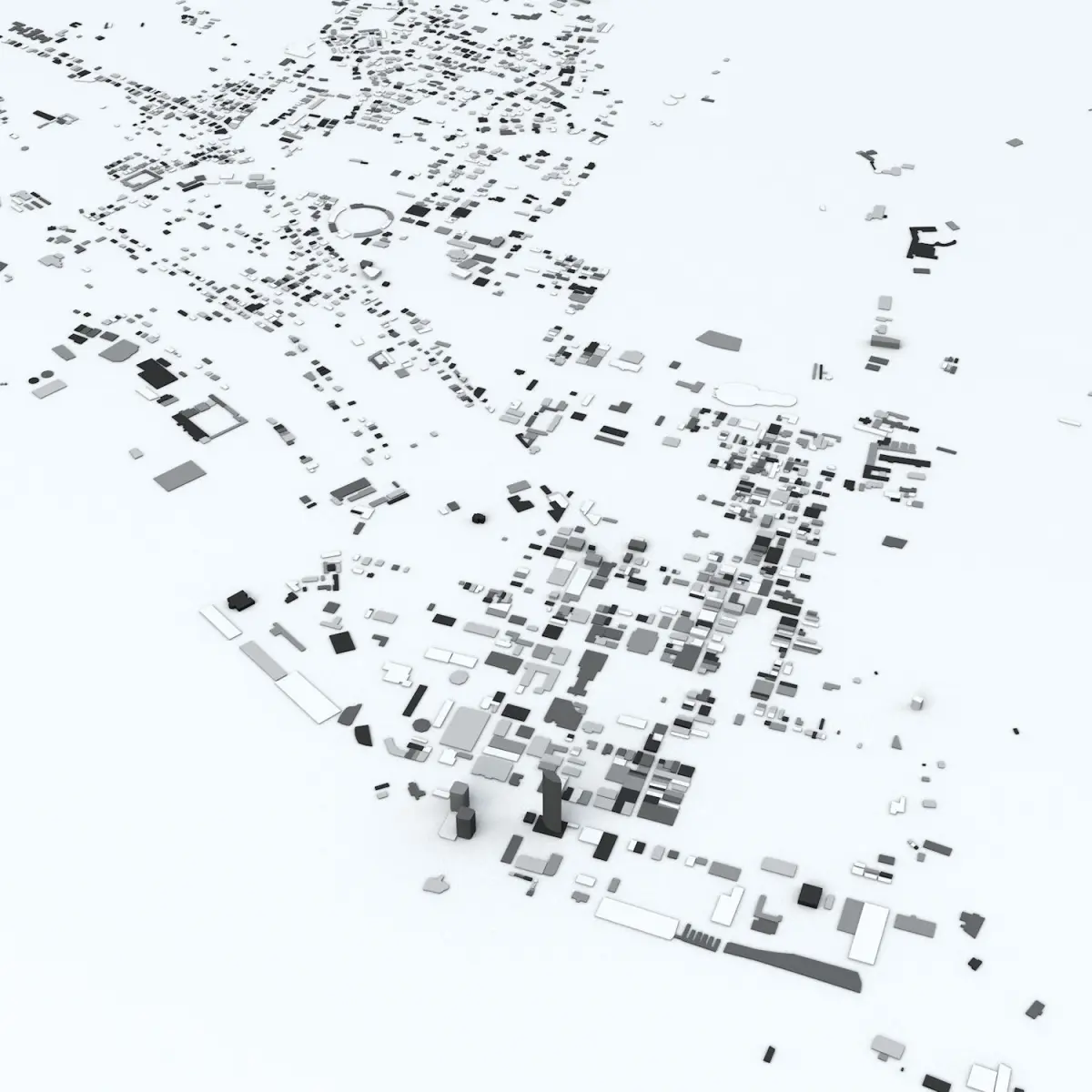 - the model is positioned on a flat surface (all buildings are on the “floor” - no elevation data included)
