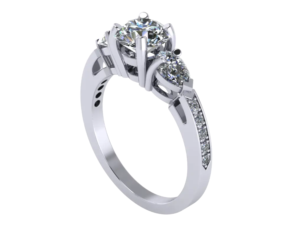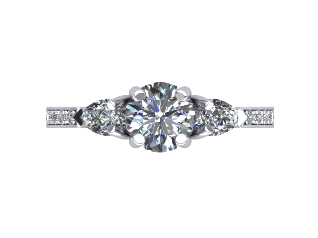1 Diamond Round 6.5 mm X 6.5 mm 10 Diamond Round 1.2 mm X 1.2 mm 2 Diamond Pear 5.4 mm X 3.4 mm Ring Rail size US 6 Ring Gold 18 kt weight 4.50 gr.