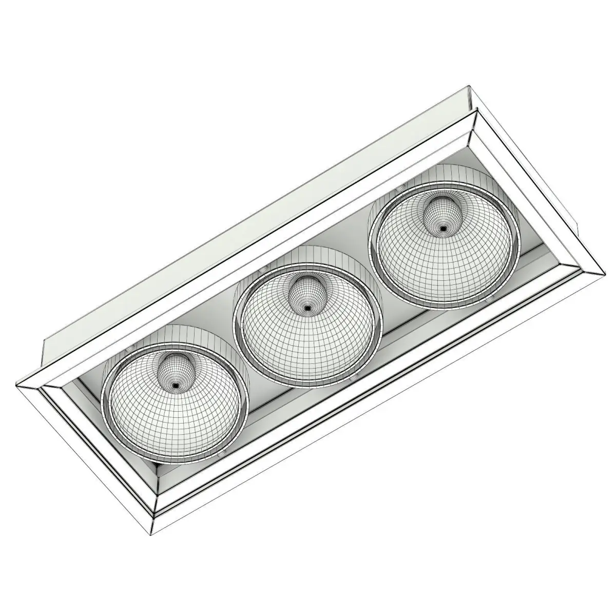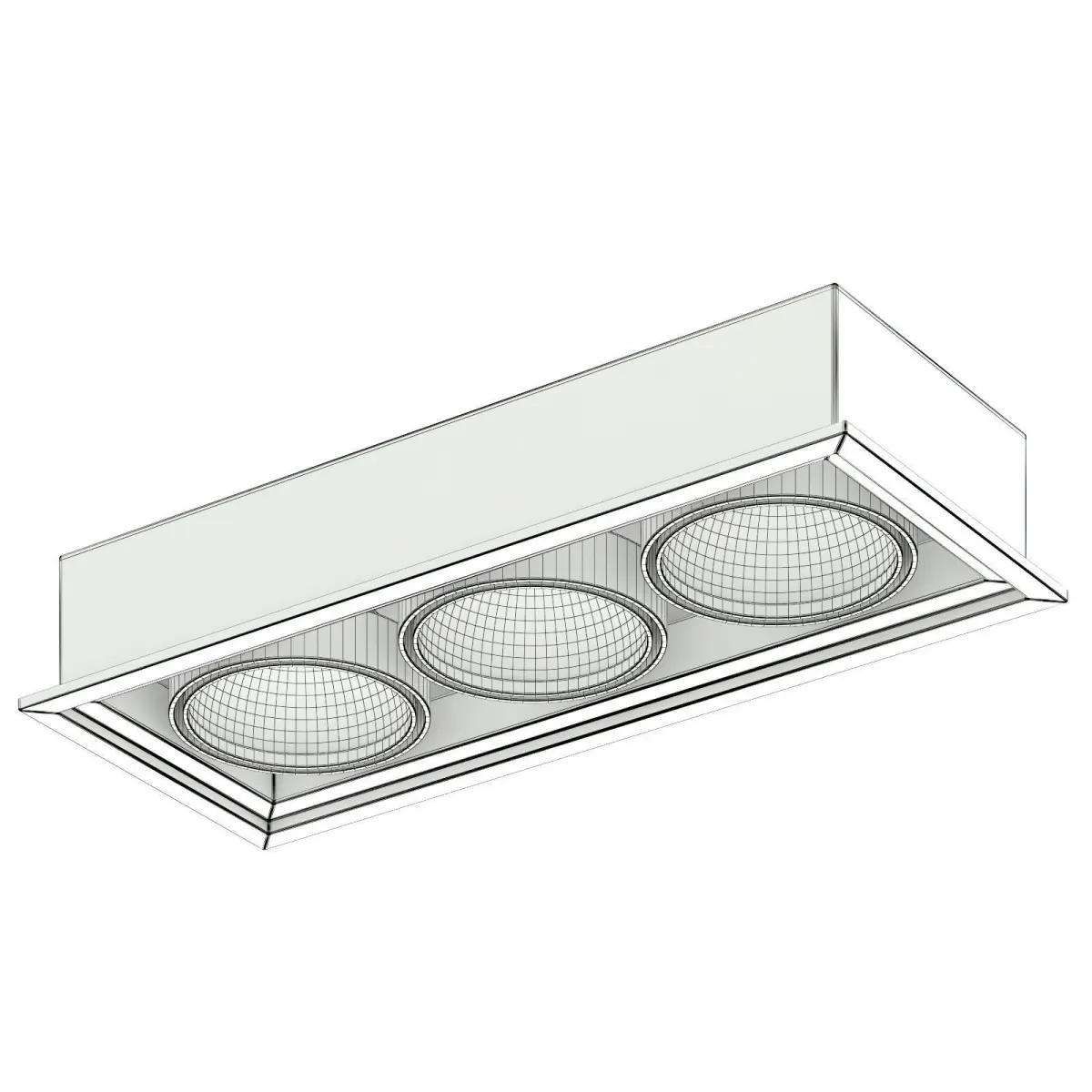 Triple ceiling light 3d model. Compatible with 3ds max 2010 (V-Ray, Mental Ray, Corona) or higher, Cinema 4D R15 (V-Ray, Advanced Renderer), Unreal Engine, FBX and OBJ.