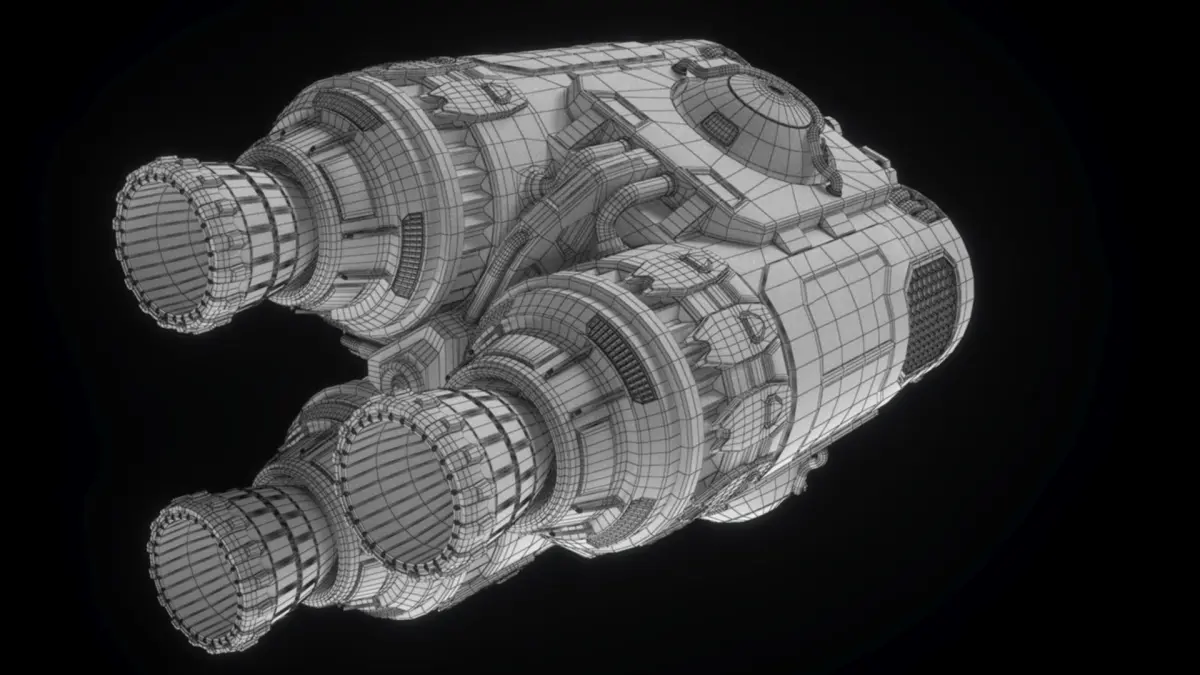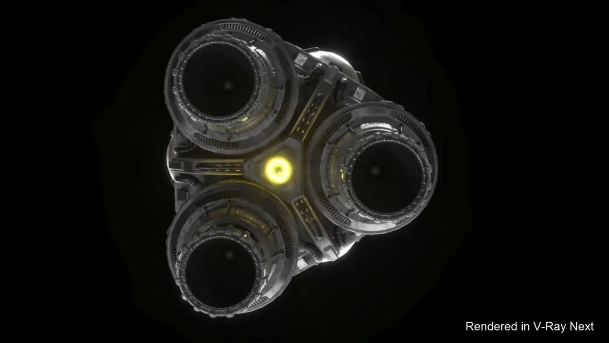 Triple fusion thruster, planned as part of future M.U.L.E. (Modular Universal Longterm Extraplanetary) construction system (modular ship/station pack).