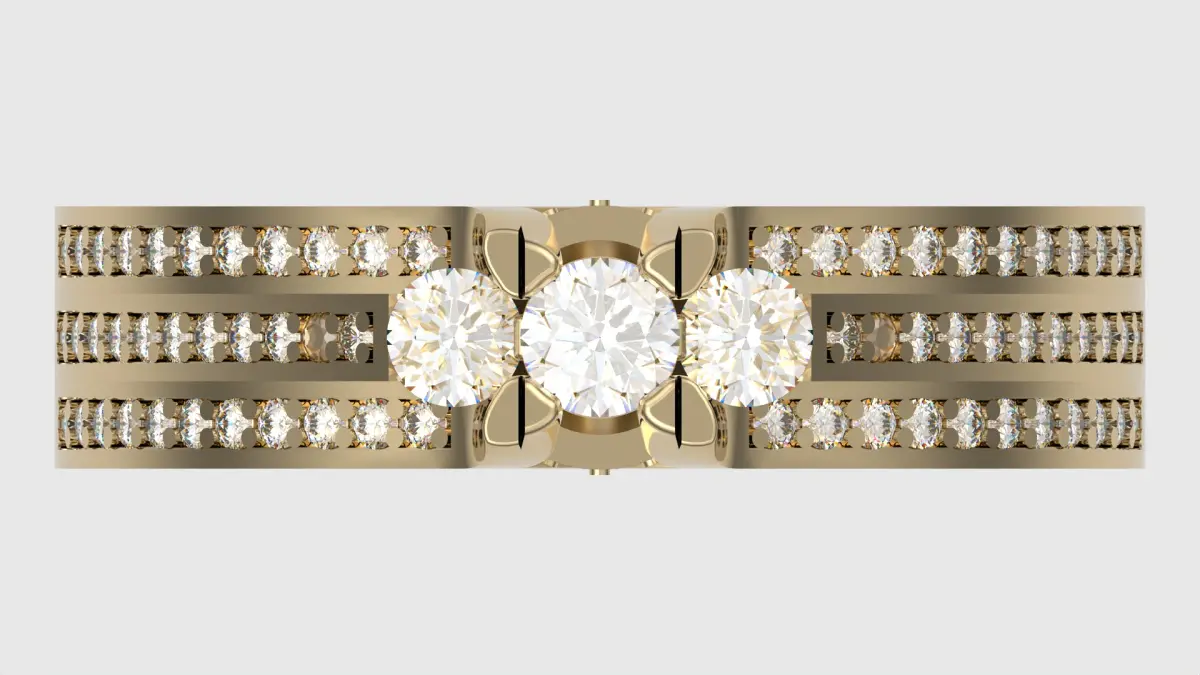 Celebrate your love with this captivating triple stone engagement ring, designed to symbolize your past, present, and future together. Each of the three main stones is meticulously positioned to catch the light from every angle, enhancing their brilliance. The band’s side is adorned with pave-set stones that add a continuous sparkle, making this ring a stunning choice for those who appreciate detailed craftsmanship. Perfect for an engagement or a significant anniversary, this ring promises to be as enduring as your love.