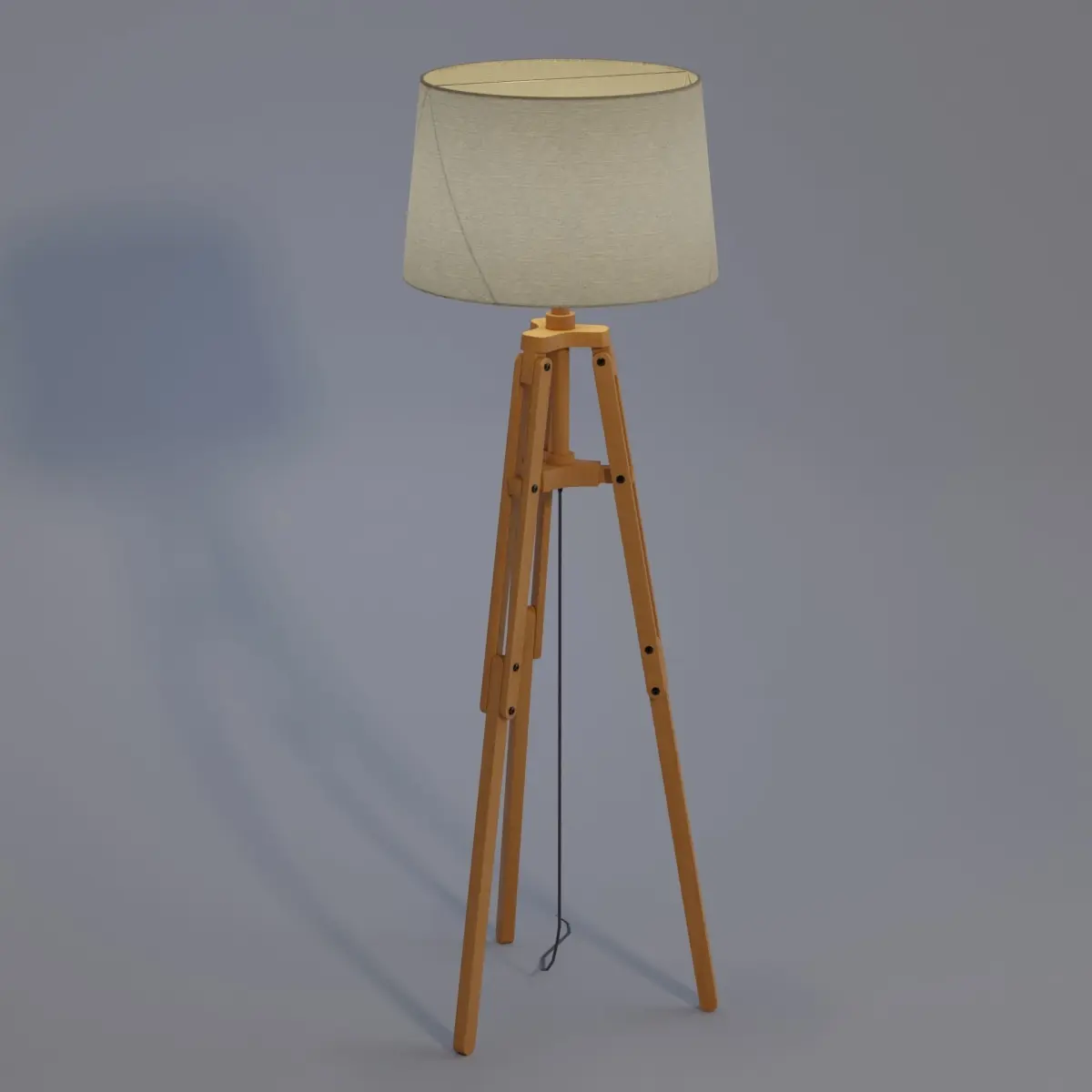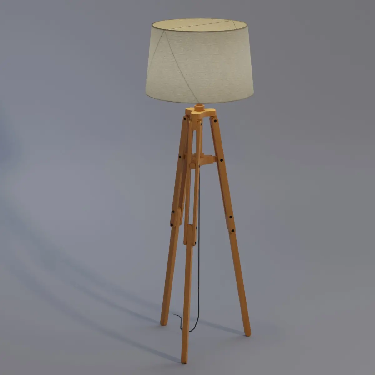 Industrial design meets nautical style in this tripod floor lamp. The base of the lamp's wooden tripod features articulated legs and a tapered fabric on top that disperses light into the environment.