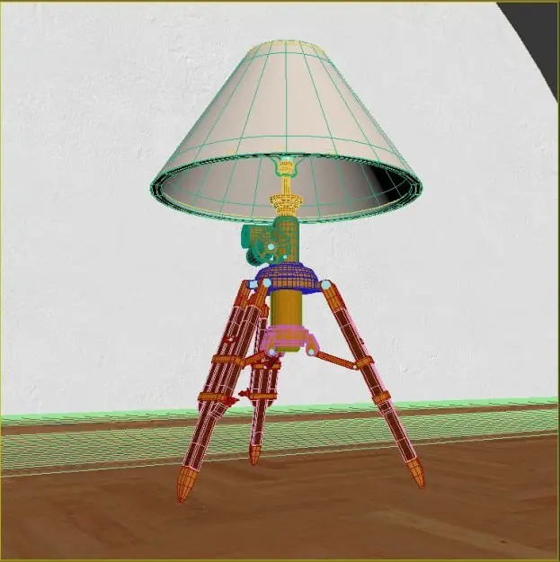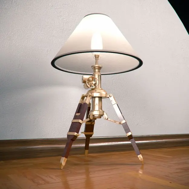A nice, elegant tripod table lamp with mahogany legs and copper parts.