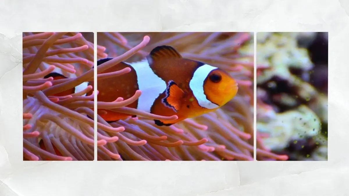 A triptych containing photograph of a clownfish and sea anemone.It has a low polygon count, appropriate for major projects/entertainment both commercial and noncommercialThe texture (picture image) is derived from a photograph. It is baked/embeded into the polygons. The texture/image appears on front and back, allowing flexibility. When rotated, the texture/image is the same but reoriented.Some rotation and scaling may be needed depending on 3D application used.Tested on Daz and should be importable on various major/minor 3D software that can import fbx.