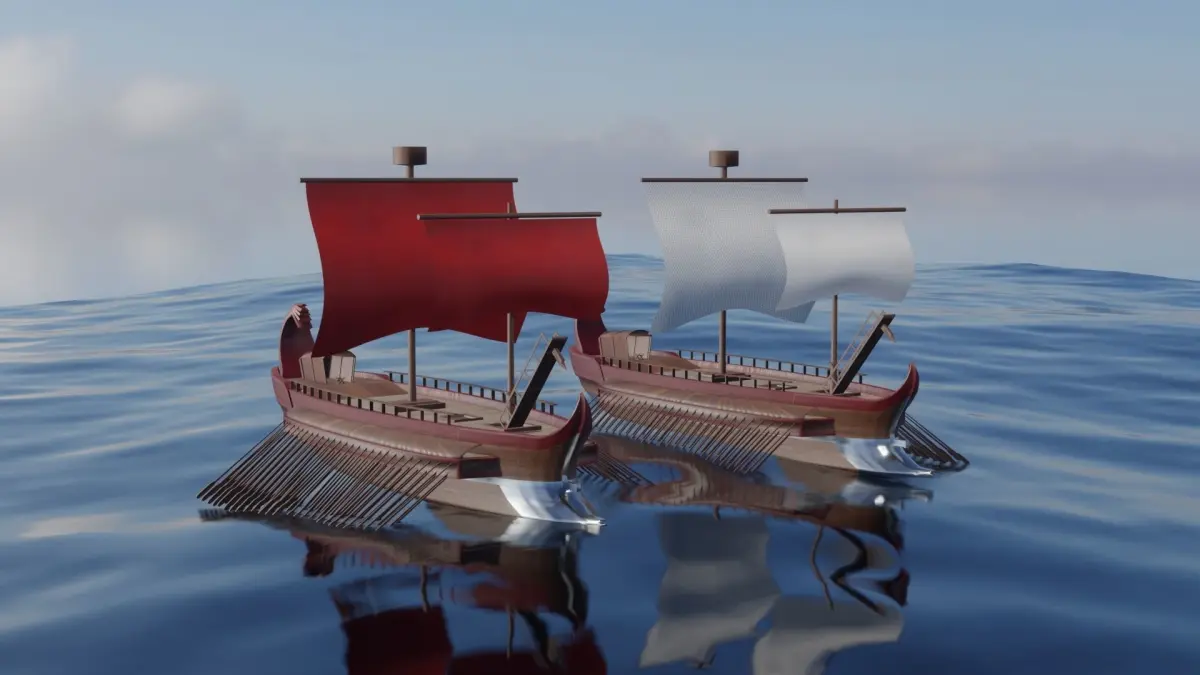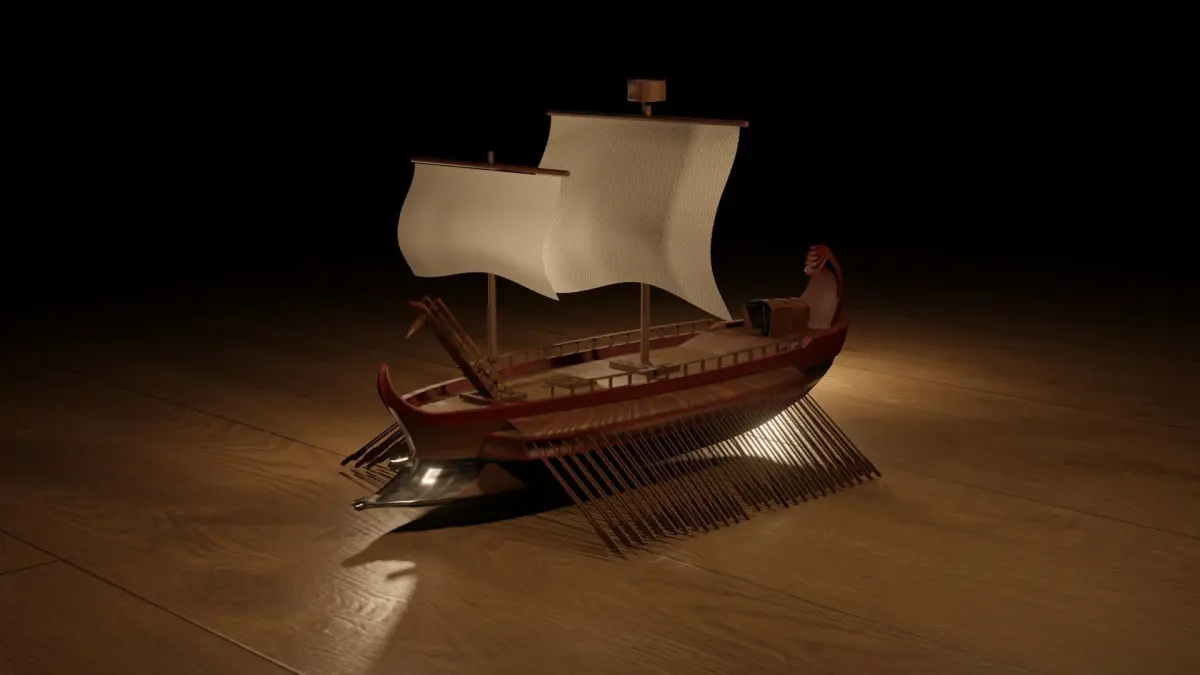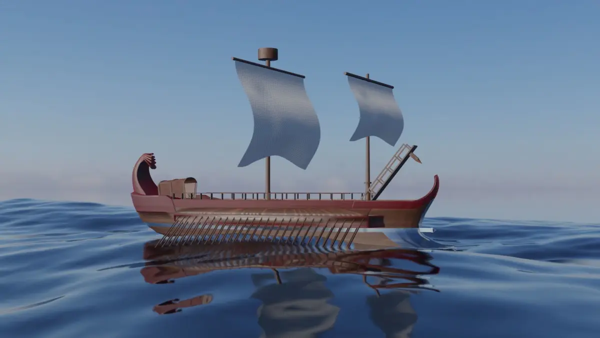A basic 3D model of an ancient warship, the trireme. Used in antiquity mainly by the Greeks and the Romans.Its name originates from the fact that it's propelled by 3 rows of oars in each side.2 versions included, one with red sails and one with white sails.