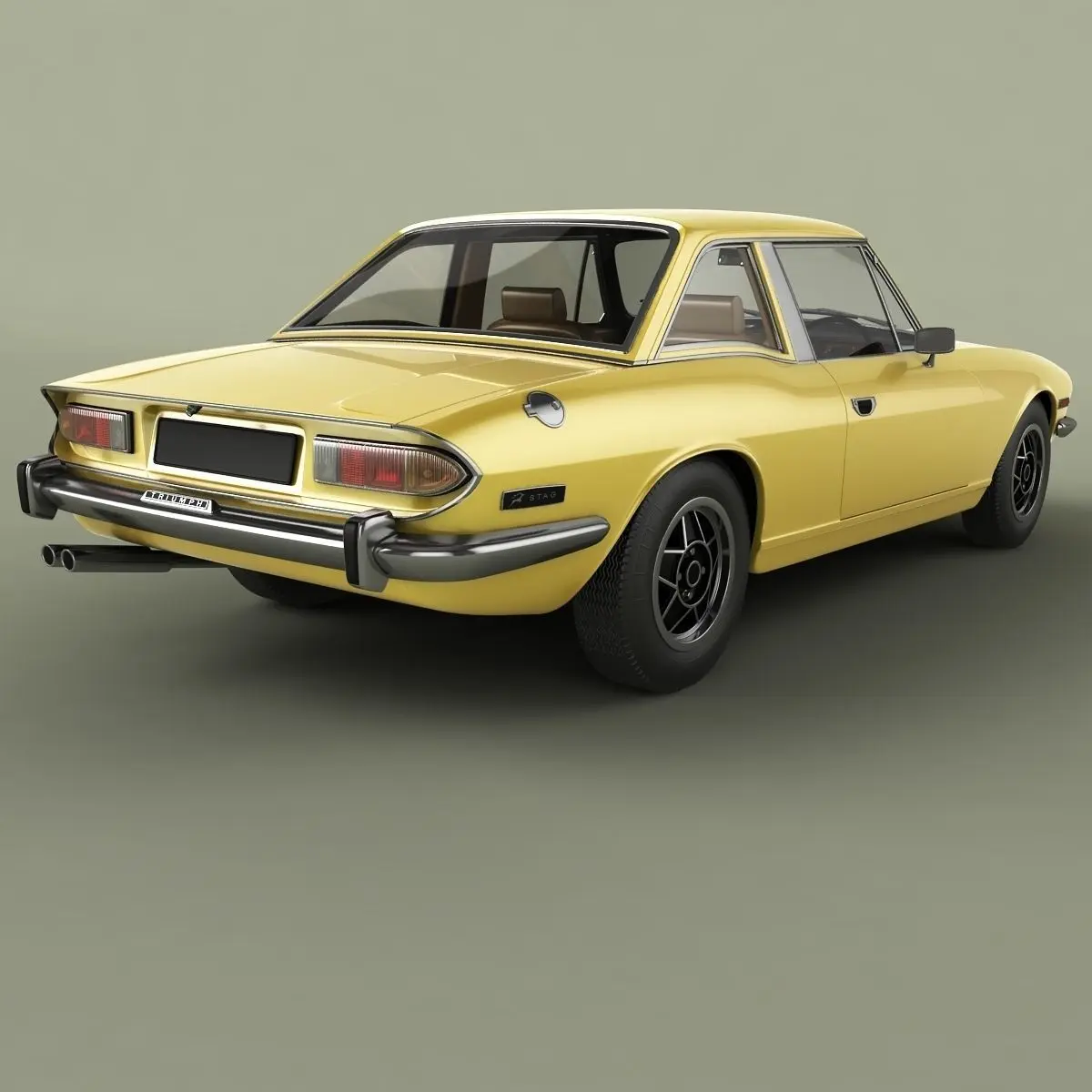 High detailed, correctly scaled model of 1970 Triumph Stag Hard Top styled by Michelotti. Originally created with 3ds Max 8. Rendered with V-Ray, files with standard materials are included. Unit system is set to metric units. Model is built to real-world scale. Geometry is Editable Poly (quads/tris only). TurboSmooth is use separately to objects (91 of 154 named objects) with iterations 2 (983936 polys, 552145 vert.) Each file was checked before upload. Materials and textures are included (7 textures - jpg 1024X1024).