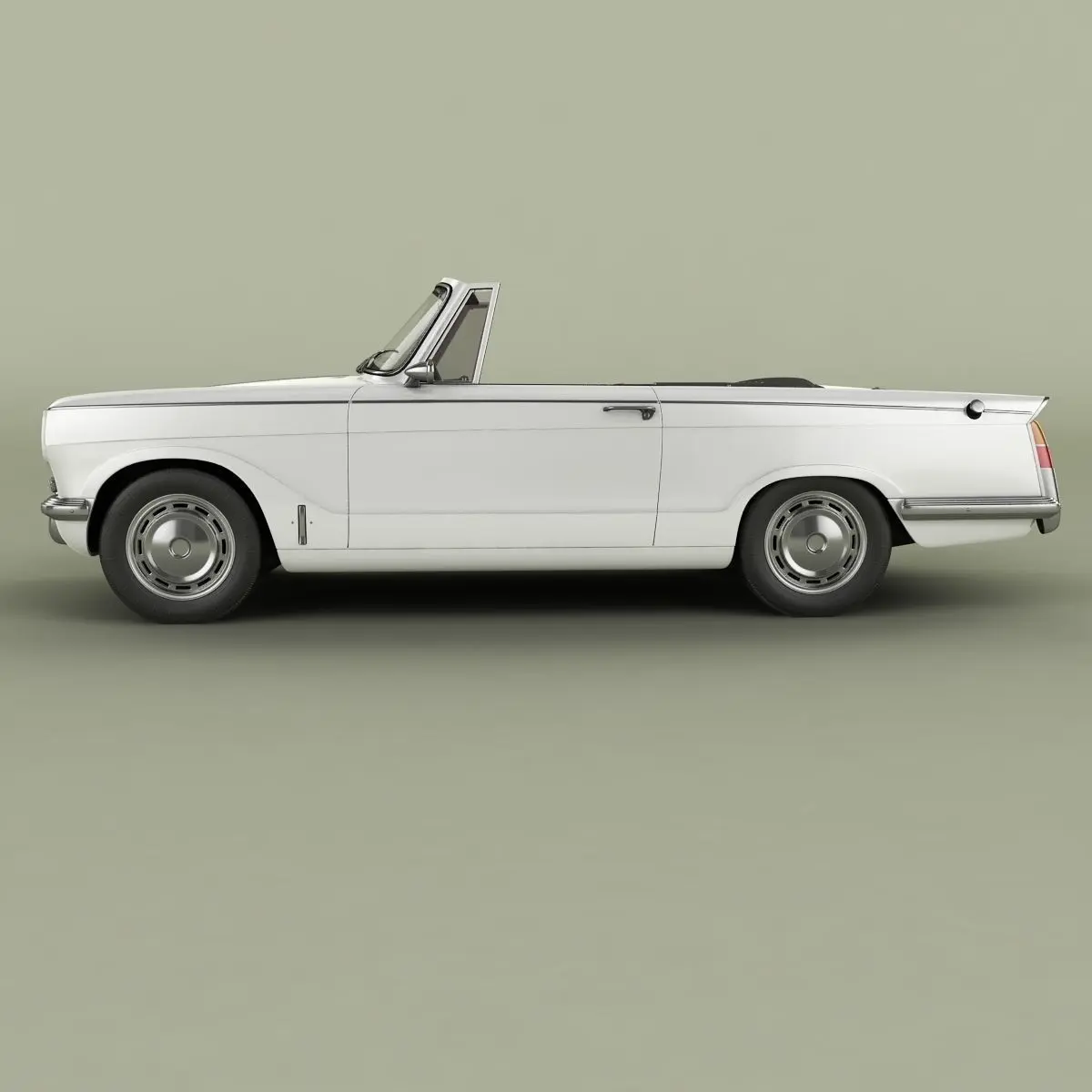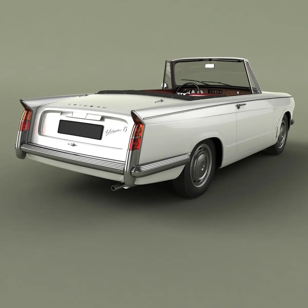 High detailed, correctly scaled model of 1964 Triumph Vitesse Convertible. Originally created with 3ds Max 8. Rendered with V-Ray, files with standard materials are included. Unit system is set to metric units. Model is built to real-world scale. Geometry is Editable Poly (quads/tris only). TurboSmooth is use separately to objects (94 of 134 named objects) with iterations 2 (1103480 polys, 578898 vert.) Each file was checked before upload. Materials and textures are included (7 textures - jpg 1024X1024).