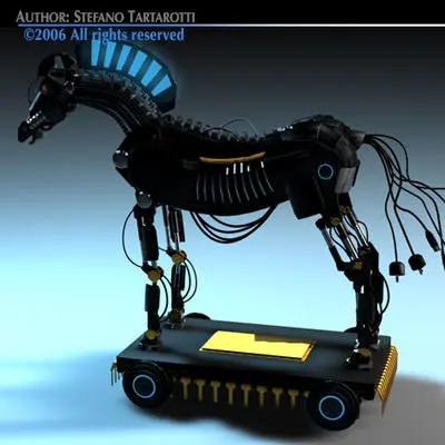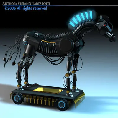 Model made for a newspaper illustration about software trojan horse. Only cinema 4d has materials. The model has'nt bones.
