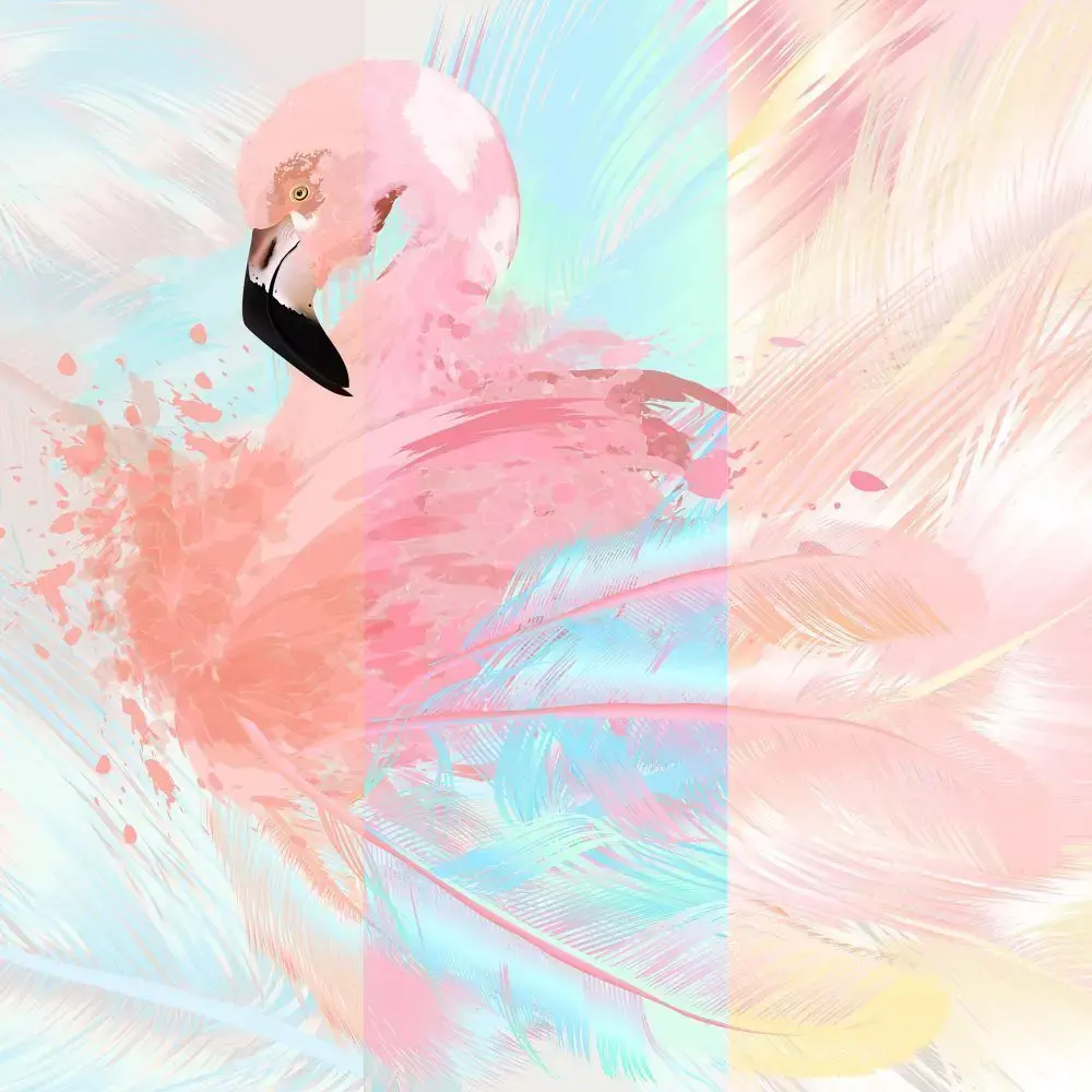 Key featuresBold central flamingo silhouette with dynamic feather motion creates an instant focal point while remaining soft and airy with watercolor‑style blending.