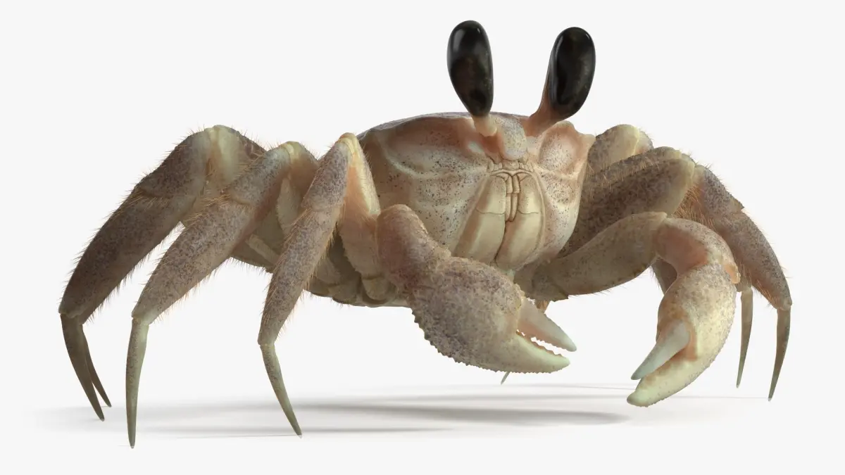 Tropical Ghost Crab Moving Pose Pink Beige Fur is a three-dimensional model of ghost crab that is a species of sand crab crustacean.