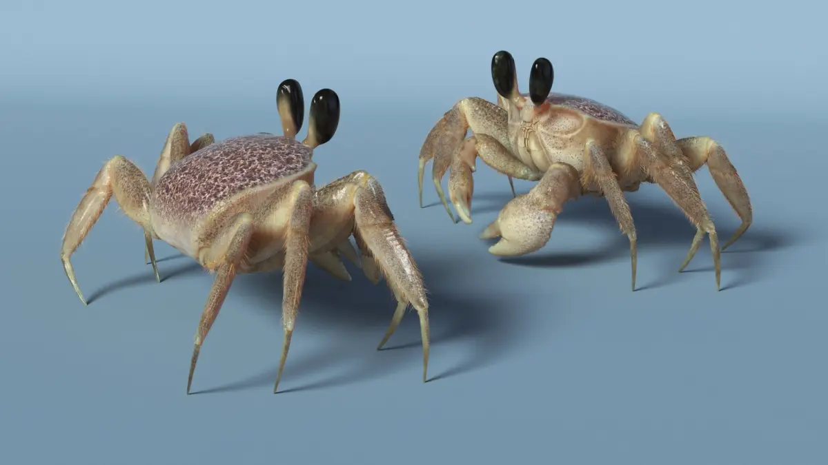 Tropical Ghost Crab Moving Pose Pink Beige Fur is a high quality, photo real 3d model that will enhance detail and realism to any of your rendering projects. The model has a fully textured, detailed design that allows for close-up renders, and was originally modeled in 3ds Max 2020 and rendered with V-Ray. Renders have no postprocessing!