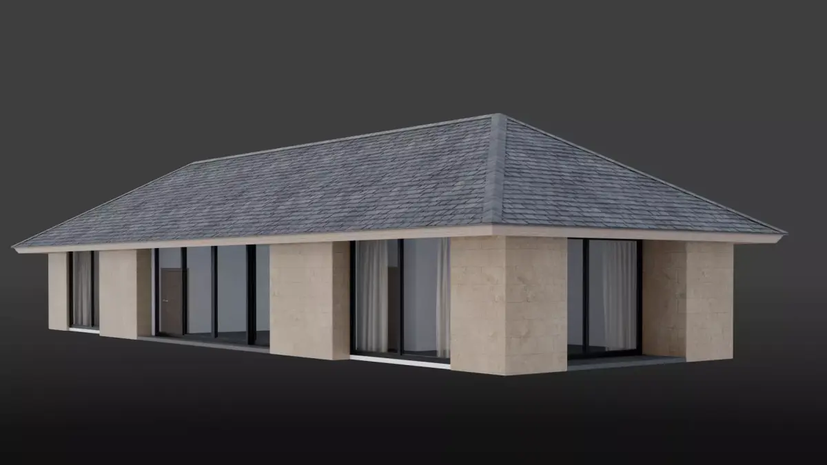 Tropical House Villa Building 3D Model. Material are packed in Blender file. Lighting using HDRi from Polyhaven (CC0)