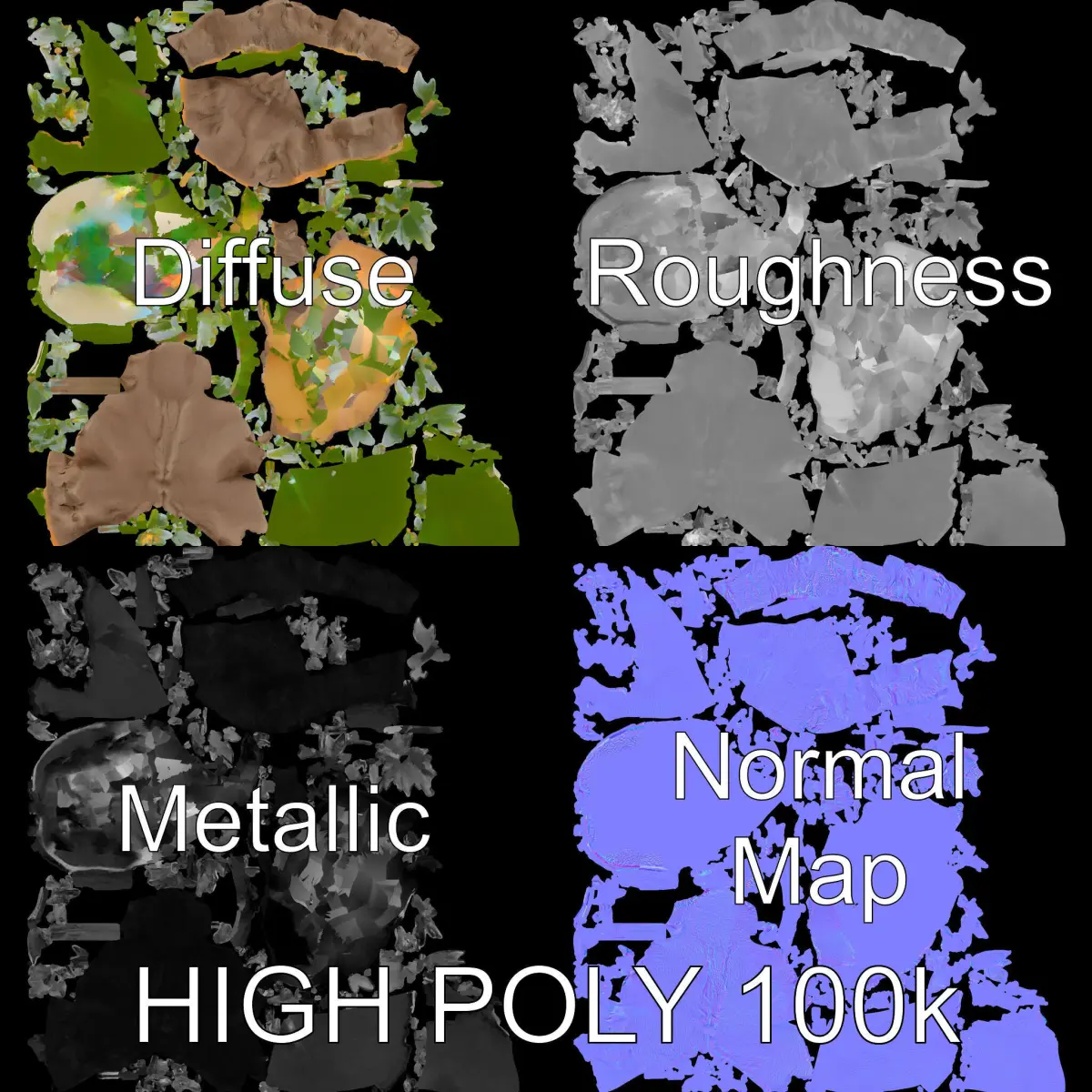 The model's textures are PBR, Diffuse, NormalMap, and reflection/roughness/metallic, suitable for any modern rendering engine. All models are accurately unwrapped with no overlapping UVs. All textures are 4096*4096 in size.