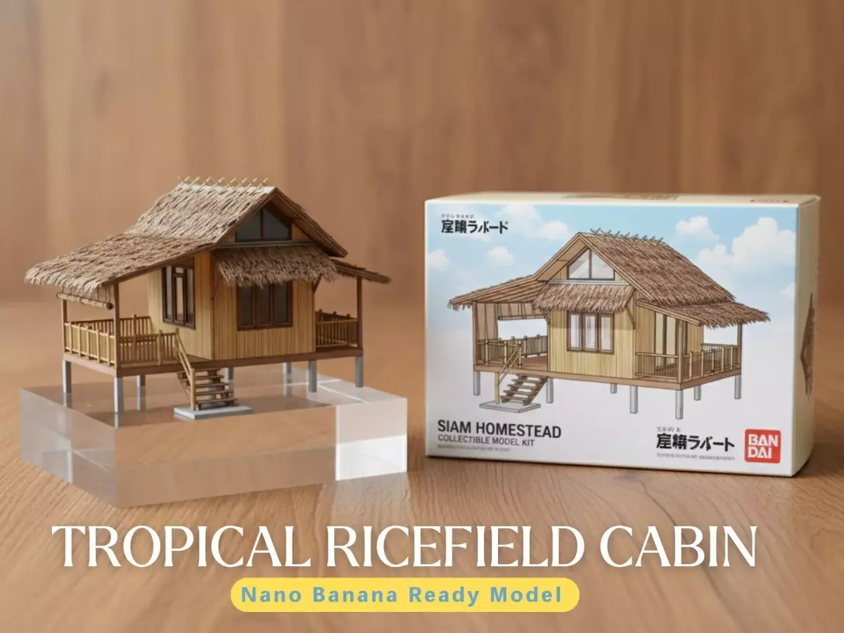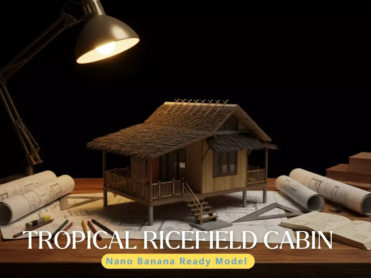 The Tropical Ricefield Cabin is a compact tropical stilt house inspired by Thai vernacular design, created for weekend living and sustainable comfort.Raised on concrete piers, the cabin features natural bamboo walls, a synthetic nipa-thatch roof, and a slope ceiling lined with compressed bamboo panels.Window and gable frames are made from wood-patterned aluminum, combining the warmth of timber with modern durability and low maintenance.