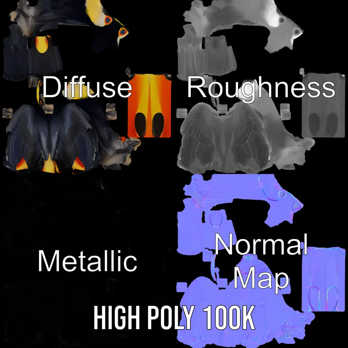 This Toucan Bird 3D Model Pack features three levels of detail with low-poly, middle-poly, and high-poly versions, making it versatile for mobile, environment rendering, and high-quality production. The model’s PBR textures include Diffuse, NormalMap, and reflection/roughness/metallic, ensuring compatibility with modern engines like Unity and Unreal. Each model is accurately unwrapped with no overlapping UVs, and textures are 4096*4096 in size. Ideal for animation, virtual reality, and educational content, offering realistic details and vibrant colors. The first image is the reference used for creating the 3D model. It is important to carefully evaluate the quality of the model by examining the preview images that display the topology and polygonal mesh. These previews (WIRE and WEB 3D Preview) clearly demonstrate how accurately the model matches the original reference and how well the geometry has been executed. Please like and leave a comment if you enjoy the model.