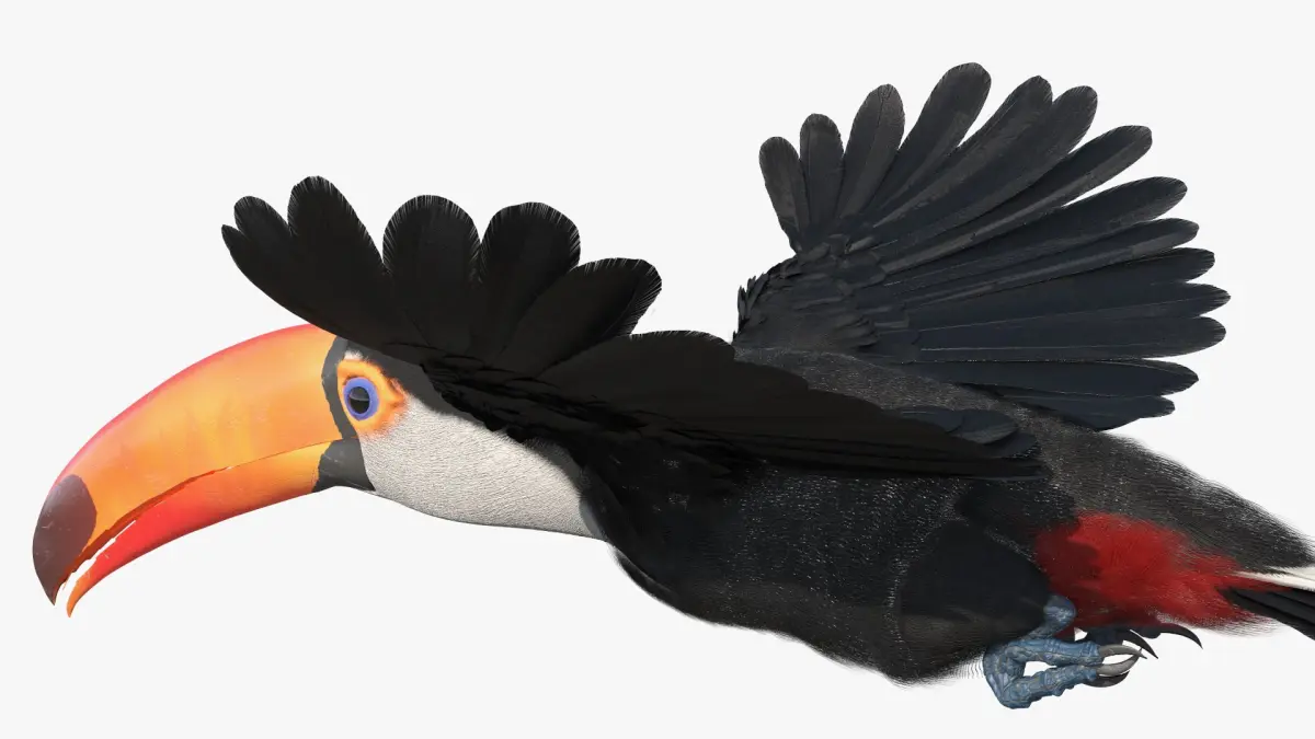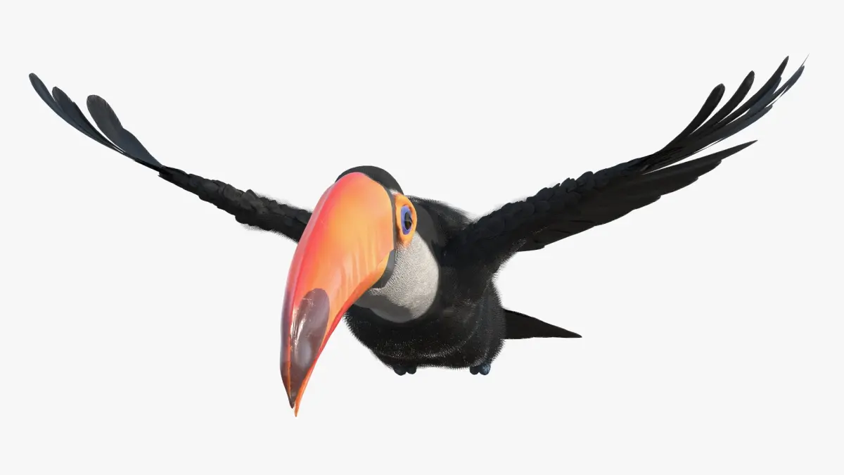 Tropical Toucan in Flight is a three-dimensional model of Toco Toucan bird that is a Ramphastos toco (largest and most recognizable member of the toucan family).