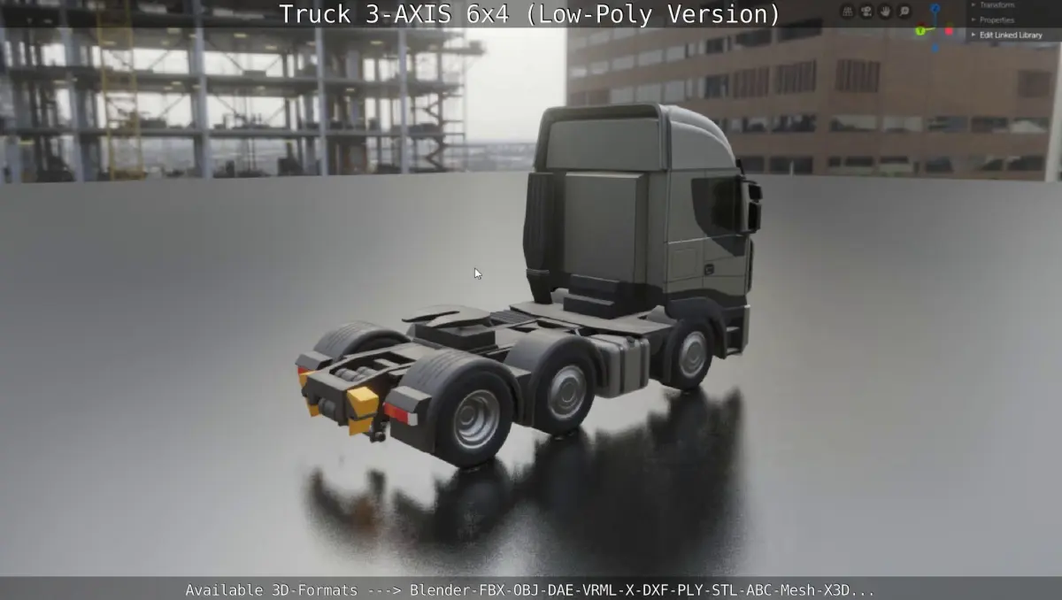 Truck 3-AXIS 6x4 Low-Poly Version