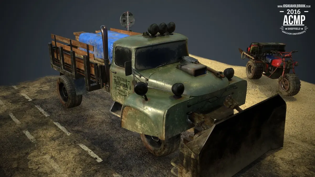 The overall aim of the project was to create two high quality vehicles which would rival the work ofother Industry Artist’s and to enhance my existing skills and help me with my aims of becoming an asset artist in the games industry.I opted to create a truck and a trike as there are a lot of great examples of trucks by other artists and I decided to create a trike as I have a passion for motorbikes but didn’t feel confident enough to create a realistic looking motorbike. The trike let me learn the basics in regards of creating the geometry as they share a lot of similar features. Moreover, a trike fits with the idea of off-road utility vehicles more so than a motorbike because they are sturdier and more rugged in their build