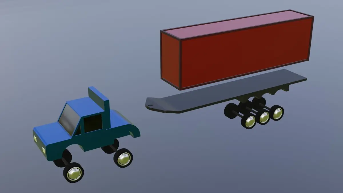 Game ready lowpoly cartoon truck trailer.
