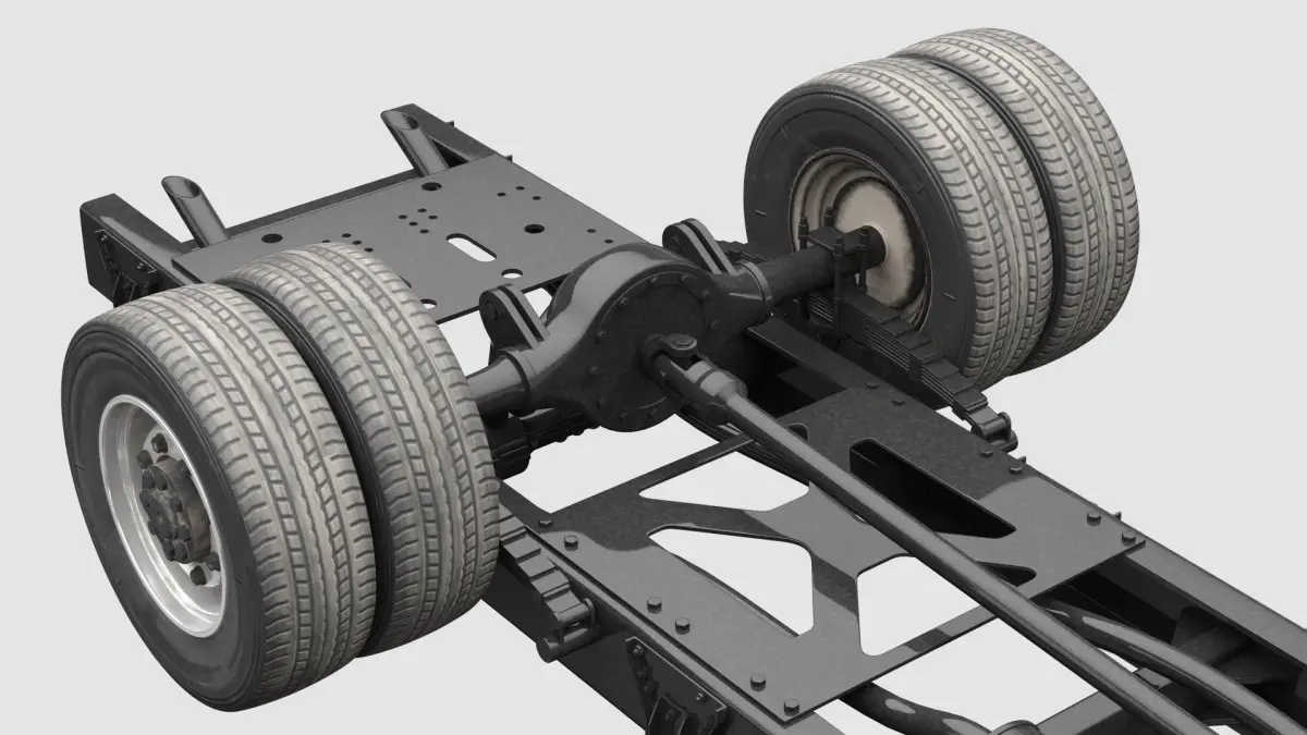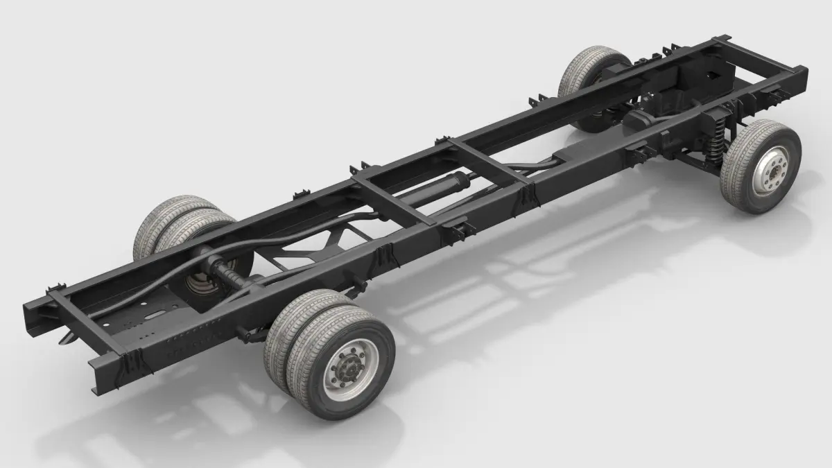 Truck Chassis 2x4 a part of cargo freight loading heavy duty wheeled vehicle.