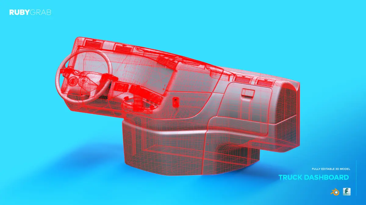 This is a high-quality, fully editable design of a truck dashboard, featuring realistic details such as a steering wheel, control buttons, and air vents. Ideal for automotive visualization, prototyping, or commercial vehicle design projects.