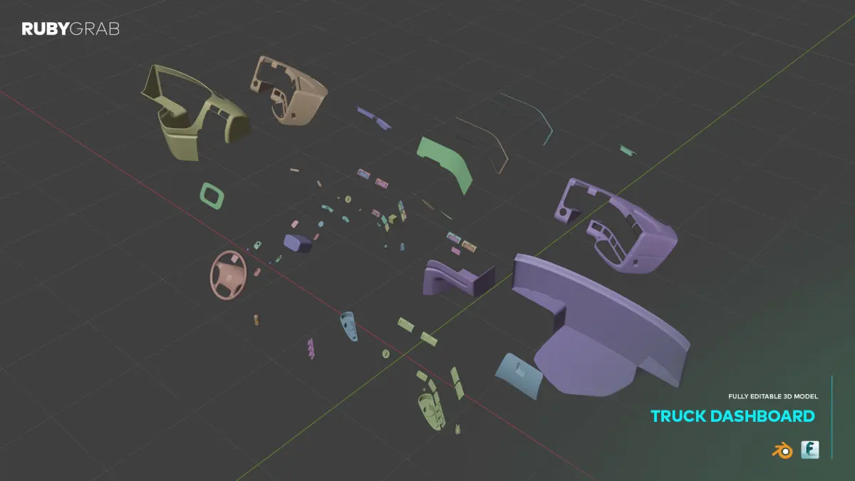 This is a premium, fully editable truck dashboard model designed for professional automotive design and visualization projects. The model includes intricate details such as a steering wheel, air vents, control buttons, and a functional dashboard layout, making it ideal for prototyping, rendering, or integrating into commercial vehicle designs. The package comes with files in .blend and .fbx formats, ensuring compatibility with a wide range of 3D software for easy customization and seamless workflow integration. Whether you're working on a visualization project, a virtual environment, or an industrial design prototype, this truck dashboard model is a versatile and highly detailed asset to elevate your work.