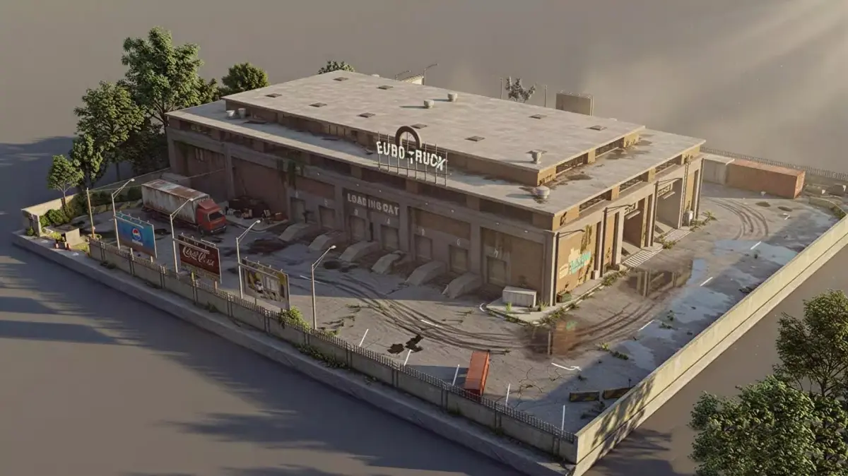 This is a fully detailed 3D Truck Hangar and Loading Bay Environment designed from a complete original concept. The scene includes a truck showroom, garage, loading bays, wide parking areas, road systems, vegetation, and multiple functional props. The entire model is created in SketchUp and enhanced in Blender 3.4 with UV mapping, PBR textures, optimized materials, and accurate lighting setups.
