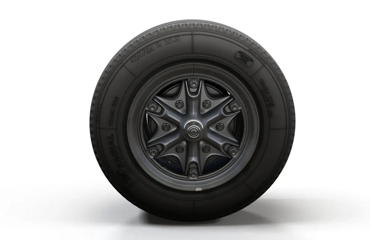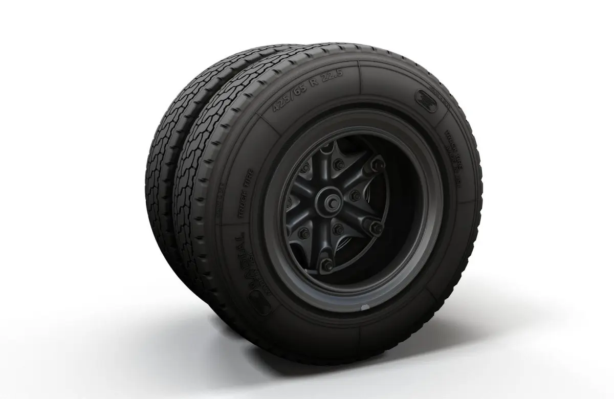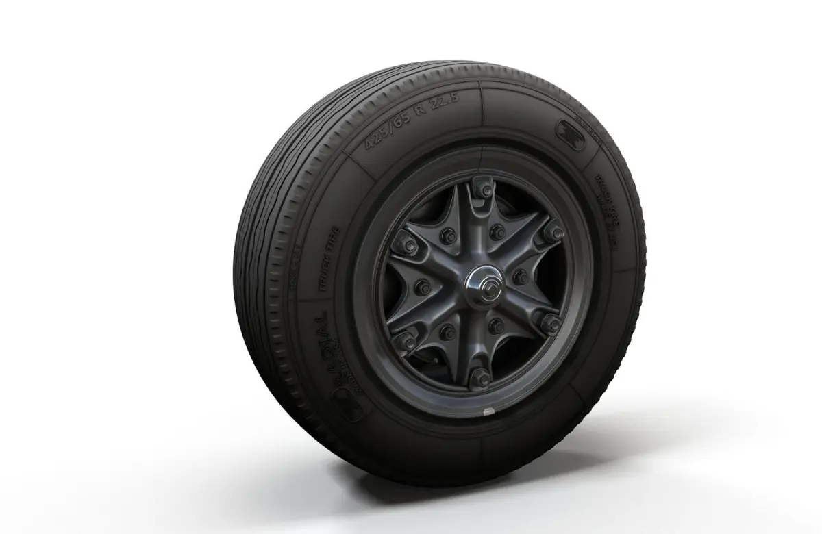 Highpoly truck wheel model. High accuracy rim and tire with thread and side text. Created with 3ds Max 2017 and saved as 3ds Max 2014.