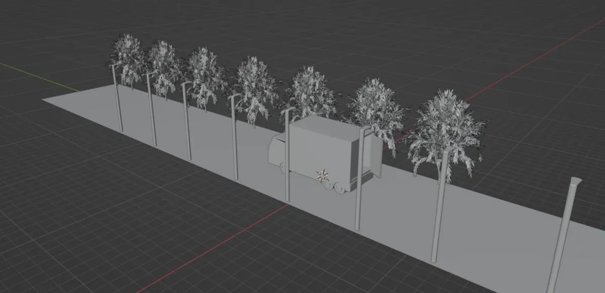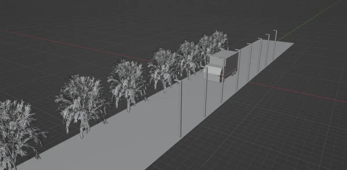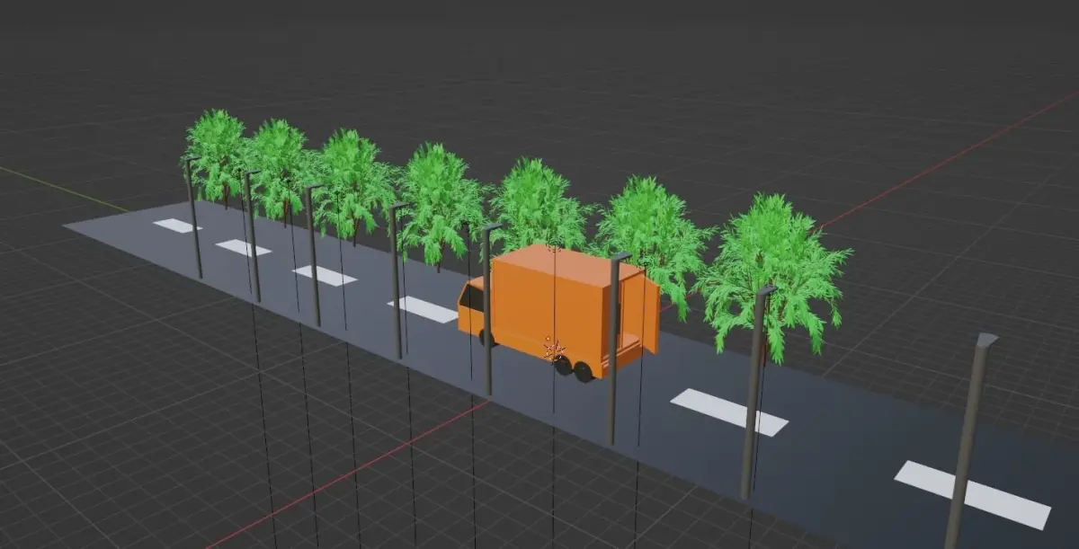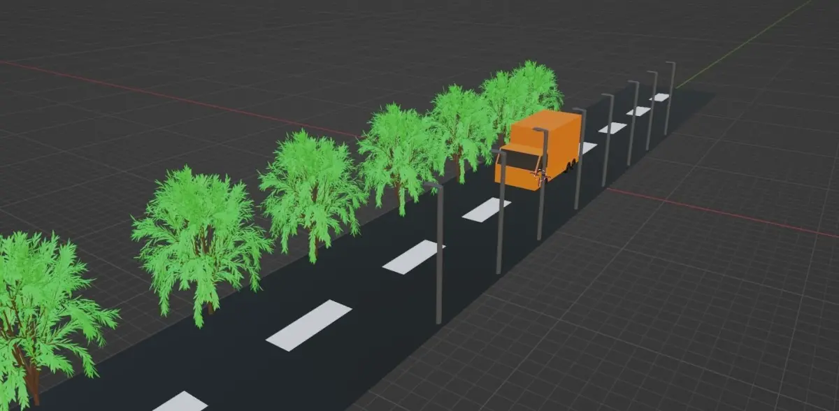 HomeCatalogTruck model orange road with trees Free low-poly 3D model