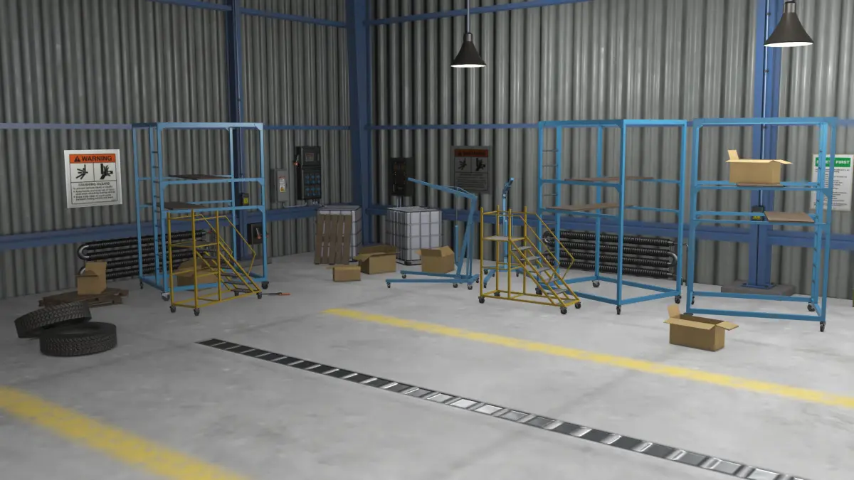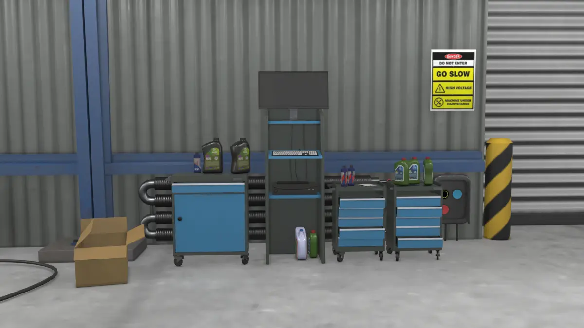 The Photorealistic 3D model of Truck Repair Workshop, This model is suitable for any visual production - broadcast, high-res film close-ups, advertising, games, design visualization, forensic presentation, etc.
