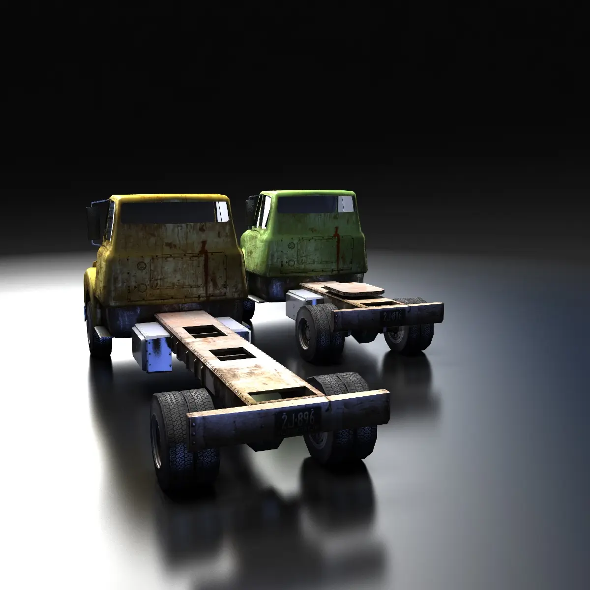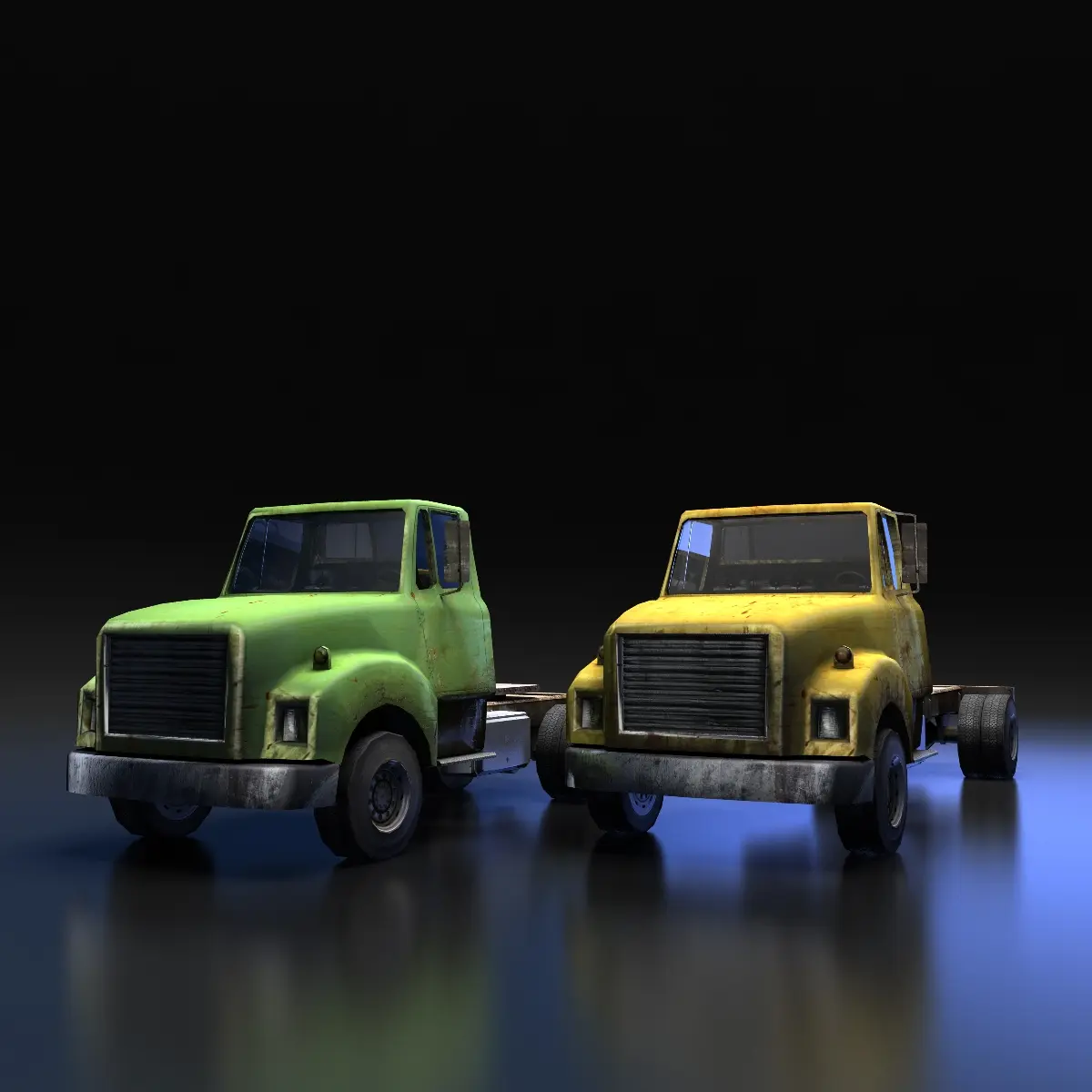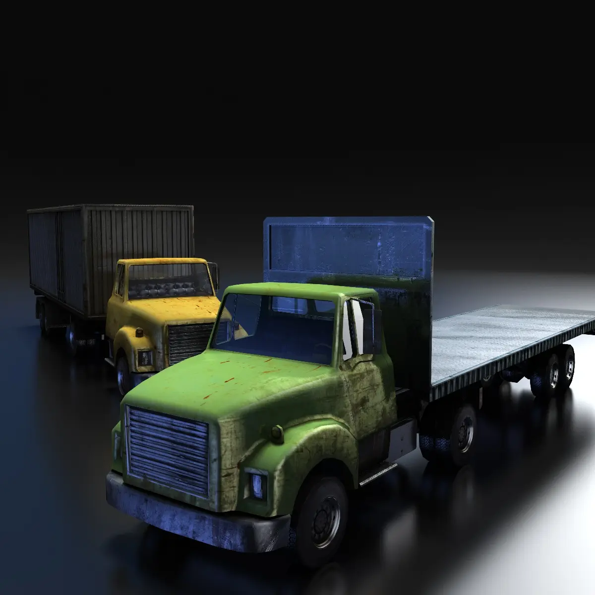 Ready to be used in most 3D apps and game engines. High quality 2048x2048 TGA textures (color, specular, normal) separately for trucks and trailers. Material is created in the old version of Vray for 3DsMax. For any other software be sure to create your own materials.
