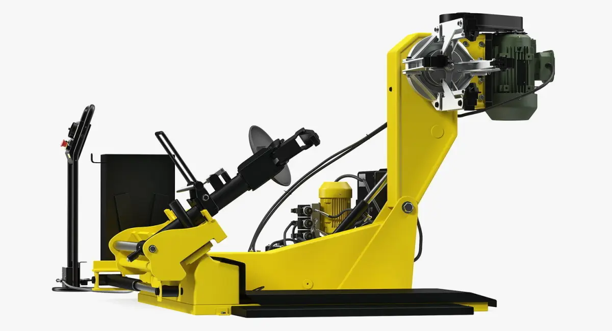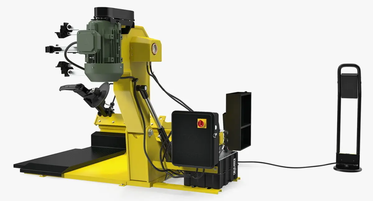 Truck Tyre Changing Machine with remote control and wheel lifting device.