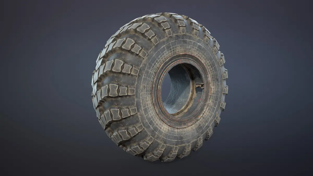 Set of heavy truck wheels for military truck Kraz-255. Collection included 3 textured low-poly models and 3 high-poly models for subdivide with no textures and UVs.