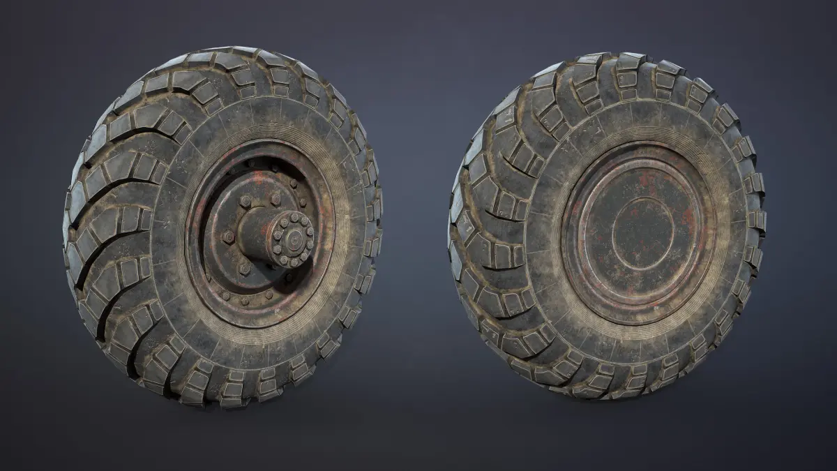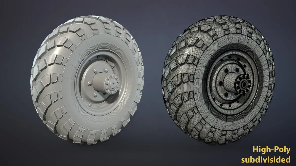 Set of wheels military 4x4 truck GAZ-66. Collection included textured low-poly model and high-poly model for subdivide with no textures and UVs.