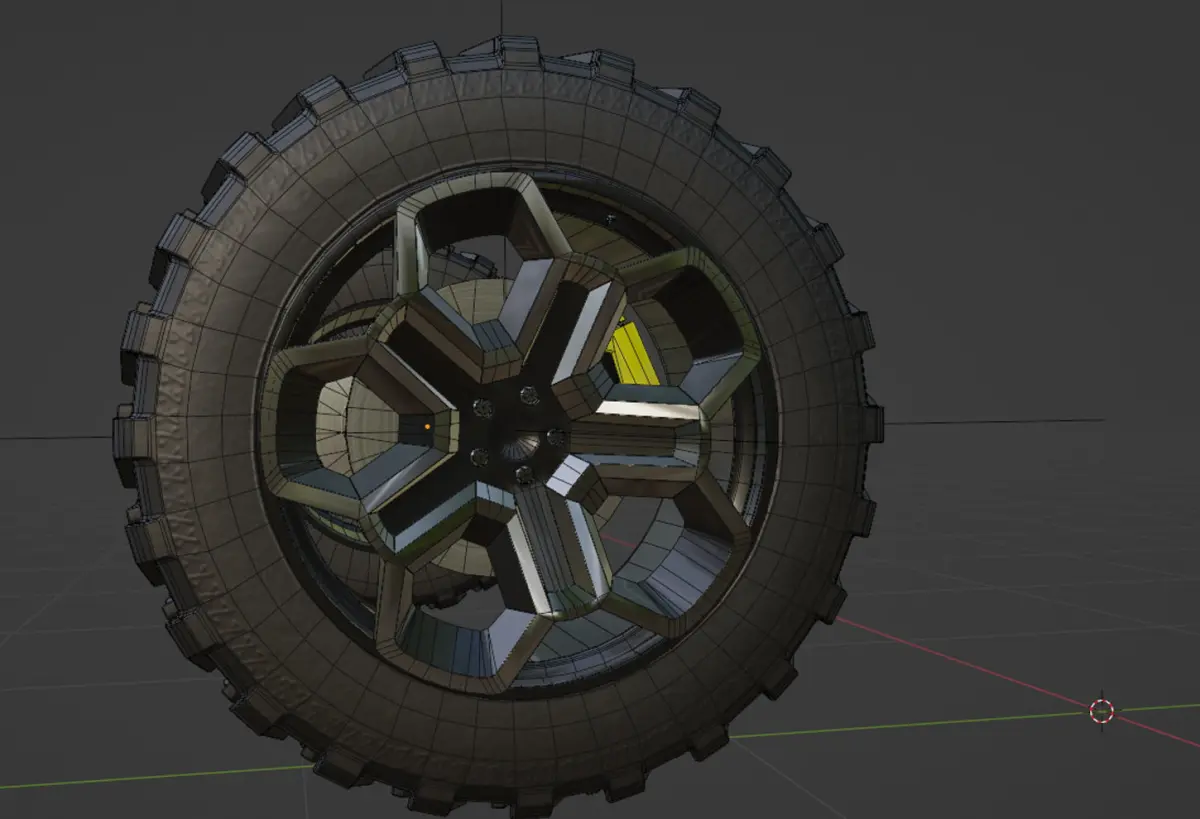 Whell for truck tire+rim+brake whit textures lowpoly ready for videogame textures list: basecolor, height, metallic, mixed AO, normal, normal Open GL ,roughness. formats: Blender (native), FBX, OBJ, DAE, STL (printable)