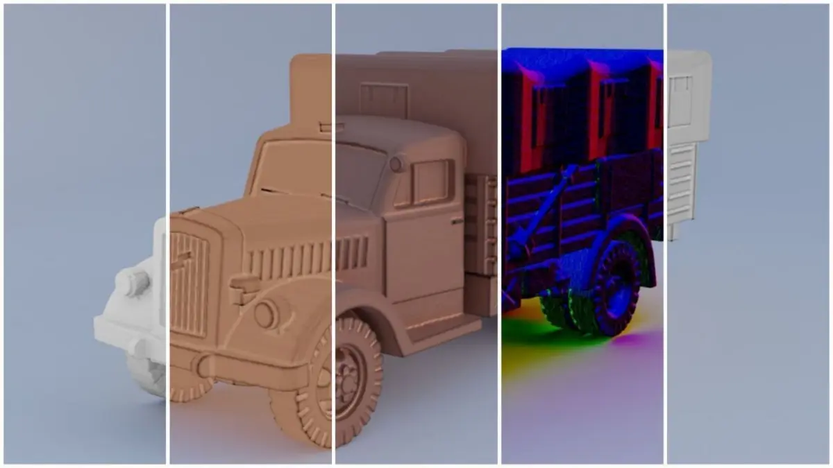 A high-poly 3D model of Truck with cabin and car body with PBR textures made for your scenes and 3D printing.