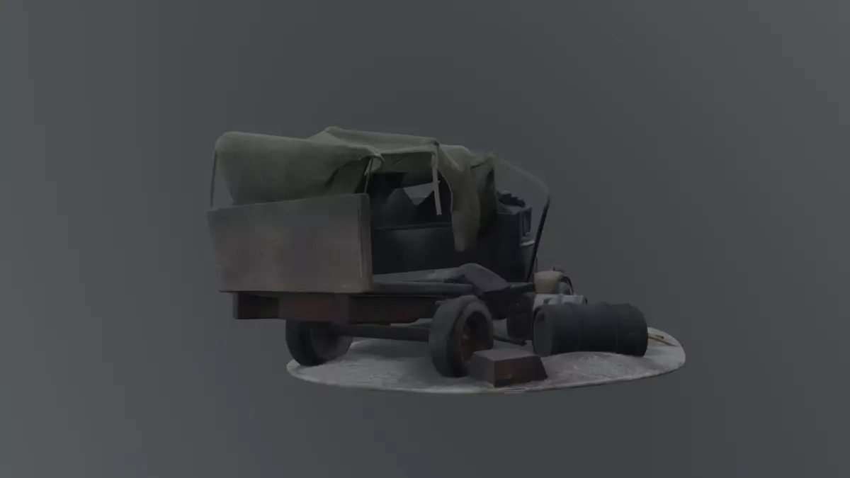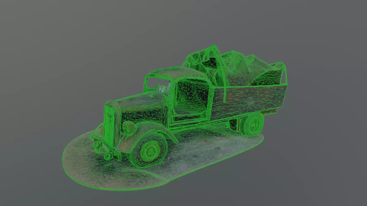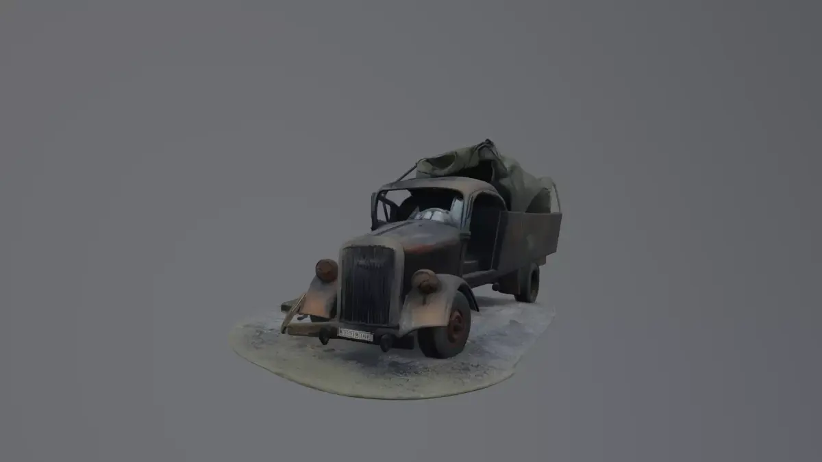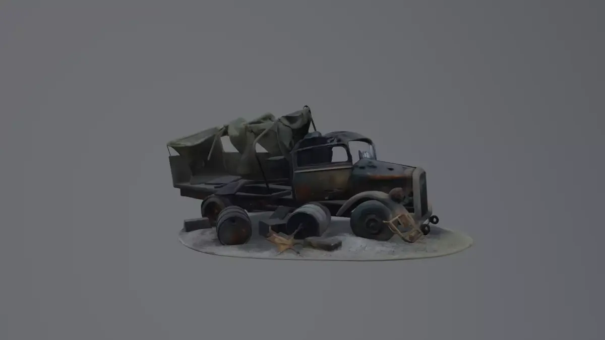 An old, weathered cargo truck prop with visible wear, rust, and age. The model features a classic flatbed design with covered cargo in the back, making it a good fit for historical, post-war, or abandoned environment scenes. works well as an environment prop, background vehicle, or scene filler. Ideal for war settings, rural maps, post-apocalyptic worlds, or cinematic shots where you need grounded, believable vehicles.