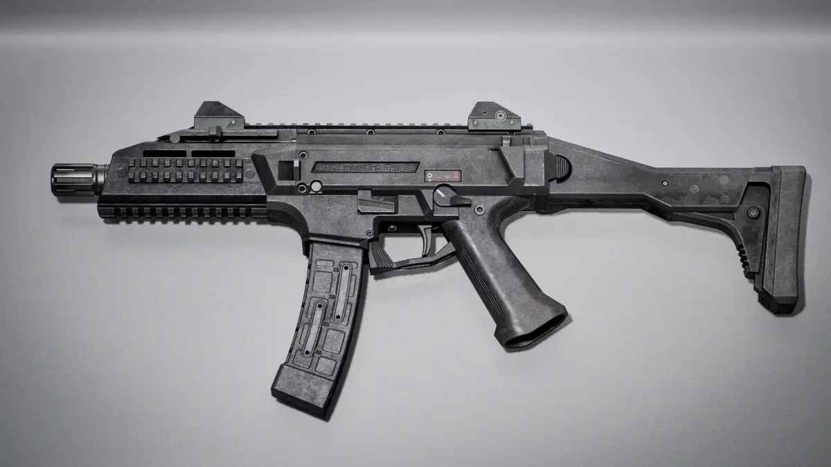 TS Swordfish is a submachine gun inspired by the legendary CZ Scorpion.This ultra-modern SMG offers extensive customization options thanks to multiple Picatinny rails, allowing a wide range of optics, grips, and tactical accessories.