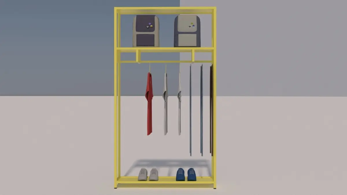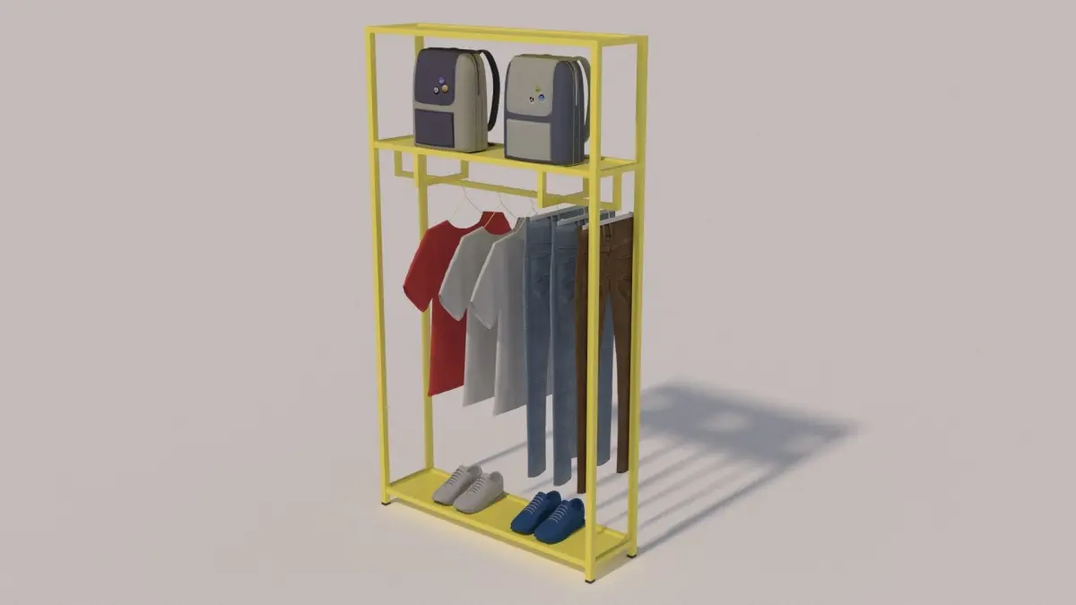Tshirts Jeans Sport Shoes and Backpack Rack 3D model