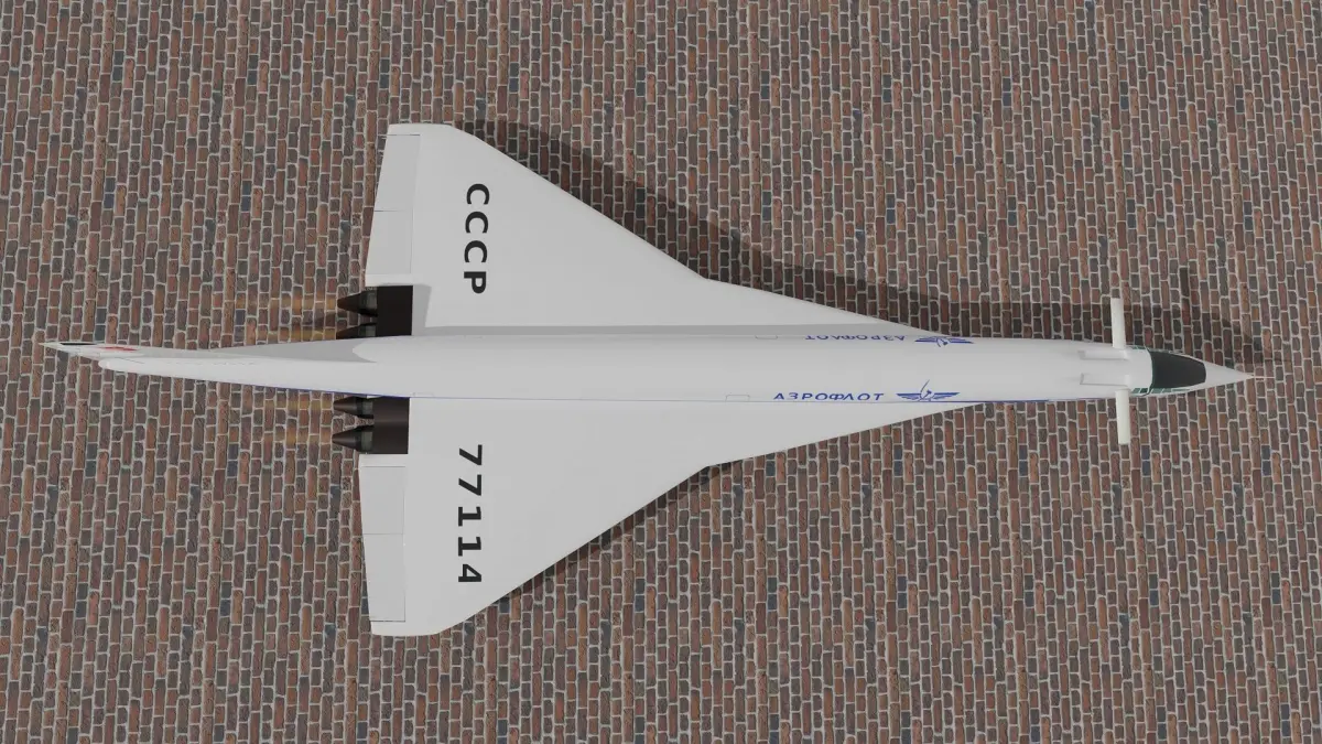 TU 144 dirty Configuration, nose down, gear down and the canards folded out. This parts and the elevons are separate objects and are riggeable. For some of hte engine componests the shaders were made from original pictures, i made in technik museum sinsheim.