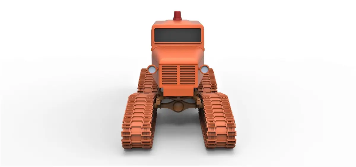 Model consists of parts: body, front chassis part, rear chassis part, tracks, cardan shafts, rear hook, flasher, front lights.Cardan shafts need to be from metal.
