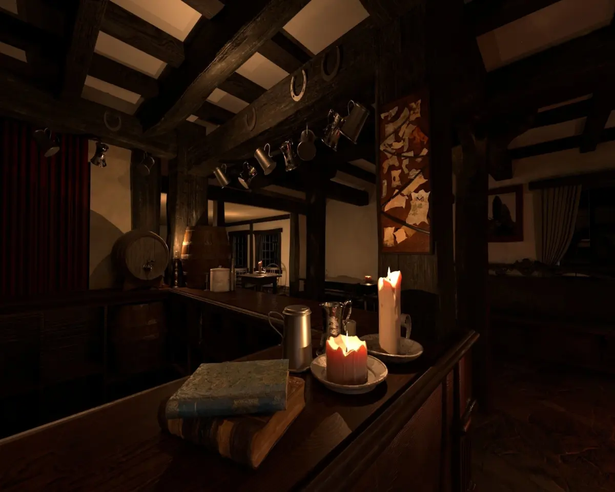 A detailed bench seat2 x tables2 styles of chairs and trestle seat2 types of barrel2 tankard variationsHay cartPitchfork and hay stacksBucketsLanterns3 types of candles2 antique booksFencingMonumentBottlesHorseshoescurtainsNotice boardOutdoor benchjugDishes