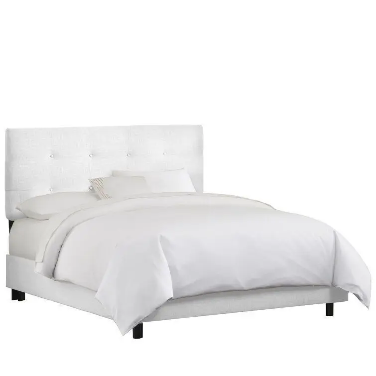 - Anchor your master suite ensemble in crisp, contemporary style with this elegant bed. The streamlined silhouette and white upholstery help this lovely design blend effortlessly into any ensemble, while the large button tufts add a pop of elegance.
