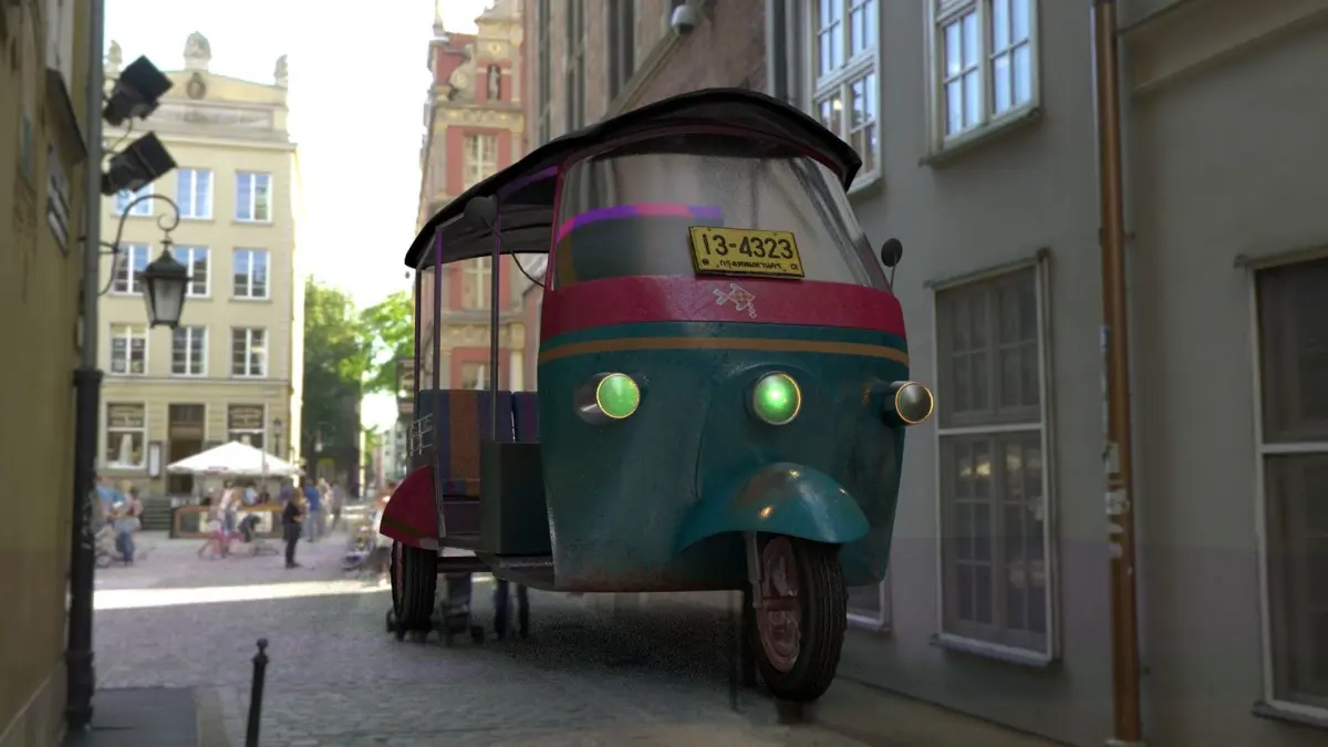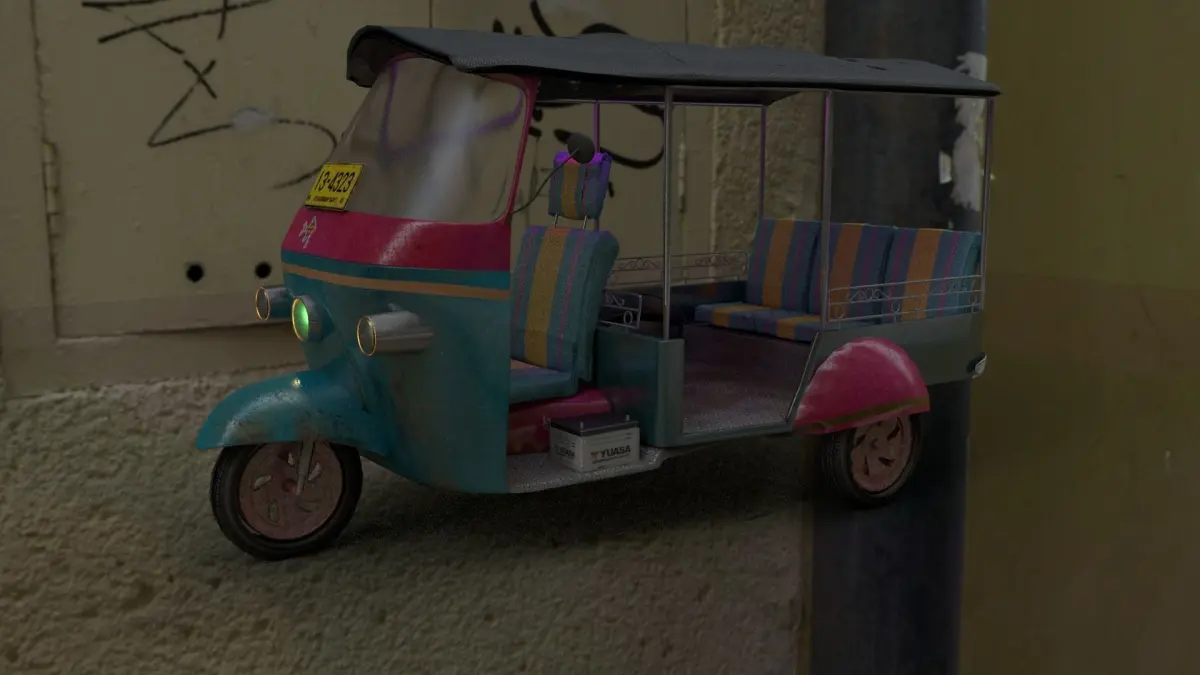 This is the model of a tuk tuk, comes with: textures, lighting, and materials for Arnold 5. Also there is an Obj, FbX, AND STL extensions for use in any other software.