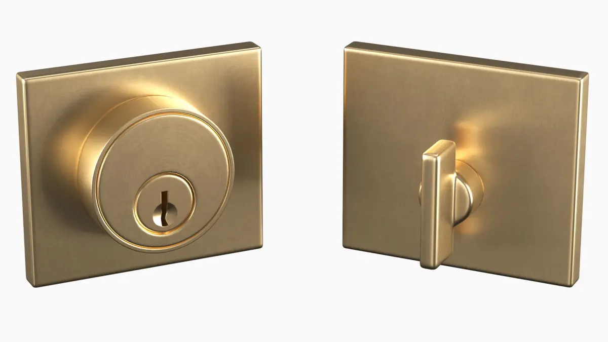 Tumalo Brass Single Square Deadbolt a high quality polygonal model for subdividing that will enhance detail and realism to any of your rendering projects.The model has a fully textured, detailed design that allows for close-up renders, and was originally modeled in 3ds Max 2017 and rendered with V-Ray. Renders don't have any postprocessing.