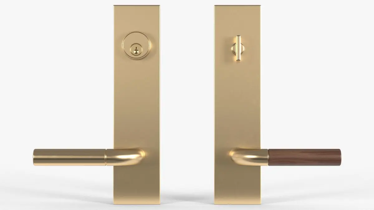Tumalo Brass with Walnut Lever Exterior Door Hardware is a high quality polygonal model for subdividing that will enhance detail and realism to any of your rendering projects.The model has a fully textured, detailed design that allows for close-up renders, and was originally modeled in 3ds Max 2017 and rendered with V-Ray. Renders don't have any postprocessing.