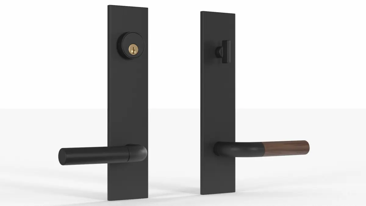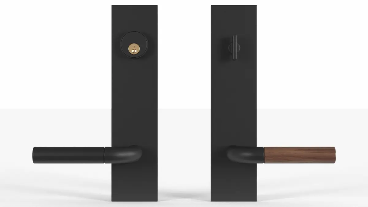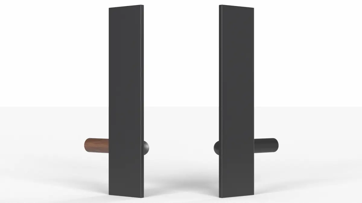 Tumalo Black Bronze with Walnut Lever Exterior Door Hardwaree has an ultra-slim design, the Tumalo door set offers a versatile, easy upgrade for any door.Ultra-slim, streamlined design and no visible fasteners.