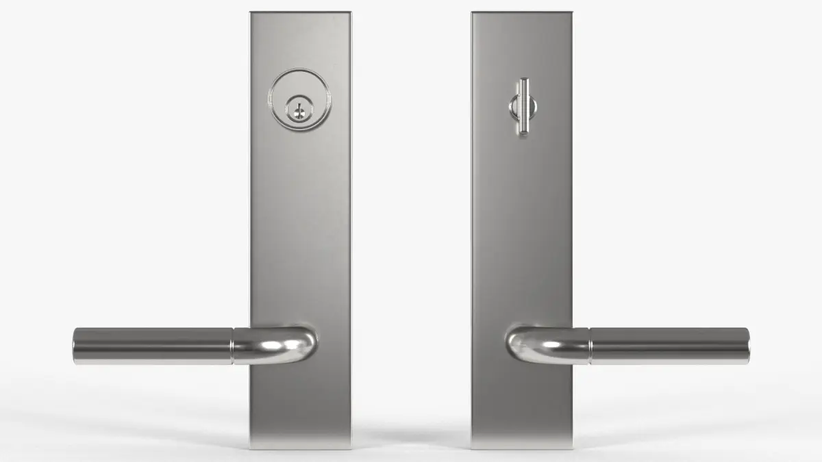Tumalo Nickel Lever Exterior Door Hardware is a high quality polygonal model for subdividing that will enhance detail and realism to any of your rendering projects.The model has a fully textured, detailed design that allows for close-up renders, and was originally modeled in 3ds Max 2017 and rendered with V-Ray. Renders don't have any postprocessing.